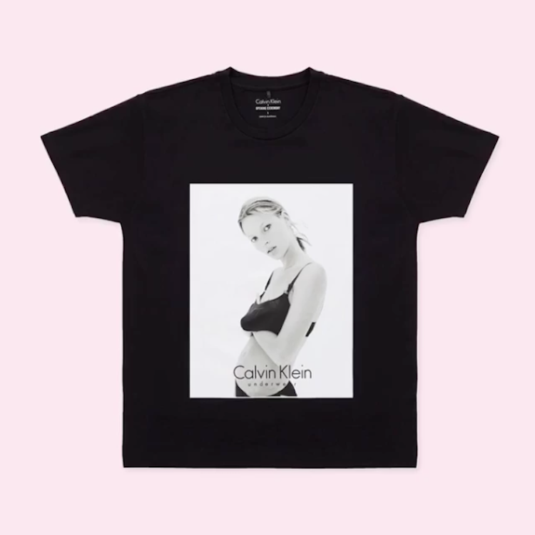 Moss went on to star in many more powerful campaigns for the brand. Mario Sorrenti shot Moss at her heartbreakingly beautiful, waifish peak for Calvin Klein Eau De Toilette, where the unmade-up supermodel stared directly down the camera lens. David Sims, in 1993, captured Kate, playful and sensual, for one of the brand’s underwear campaigns. Now, Calvin Klein is releasing these images, printed on black and white t-shirts, exclusive to Opening Ceremony as part of an initiative to support amfAR, the American Foundation for AIDS Research. What better excuse do you need for picking up a piece of fashion history? Purchase the tee on Opening Ceremony’s website.