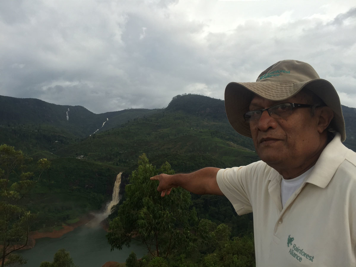 Nestled at the base of a 300-foot waterfall surrounded by rainforest, and at the mouth of a lake surrounded by tea farm hills with clouds moving lazily through, lives Sumanawathi Wegedara. We are visiting her sustainable farm.