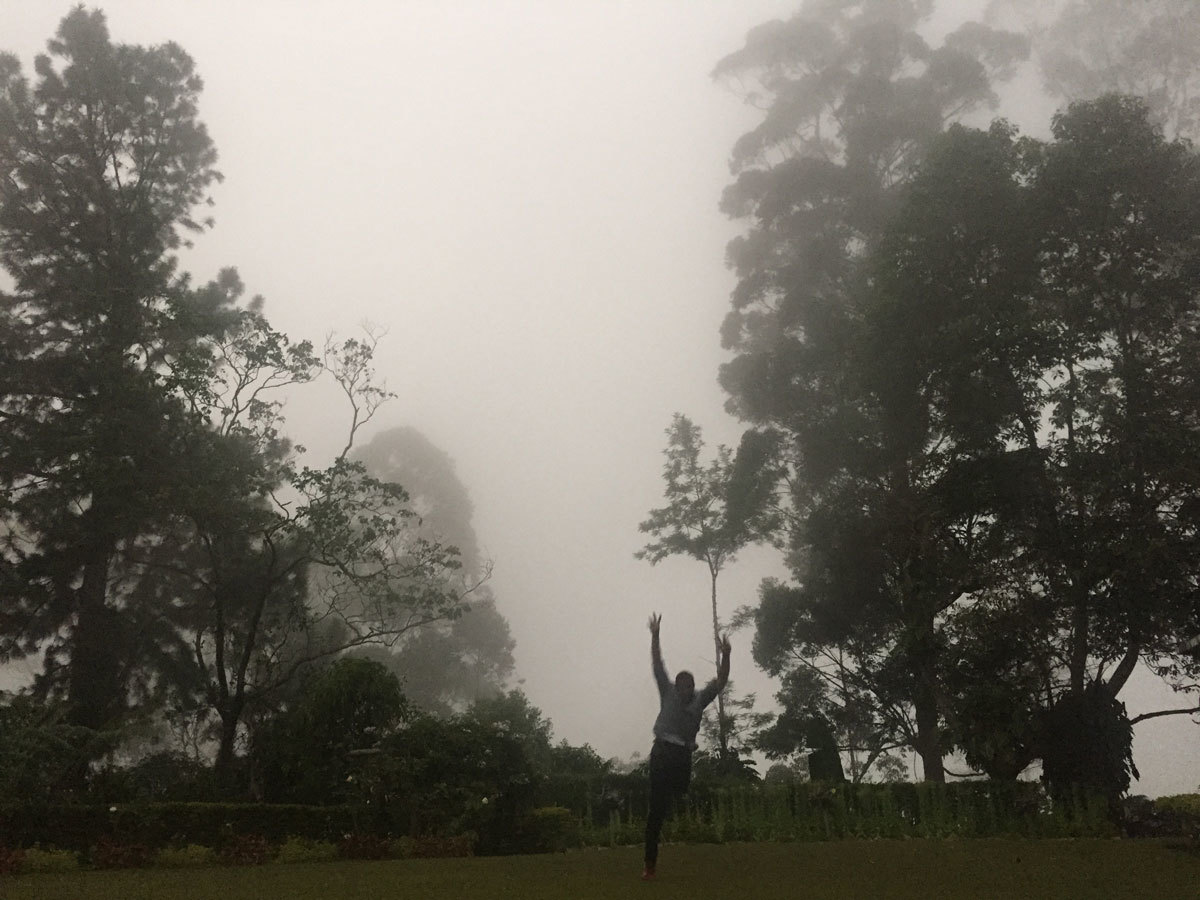 As the sun sets, clouds descend on the tea slopes, then the garden, then the house. We can’t help ourselves, grown adults, we jump for joy in the mist. Peiris tells us he has a surprise, their homemade wine for us to taste! Mulberry, lobi, cherry apple, green tea, and local flower flavours.