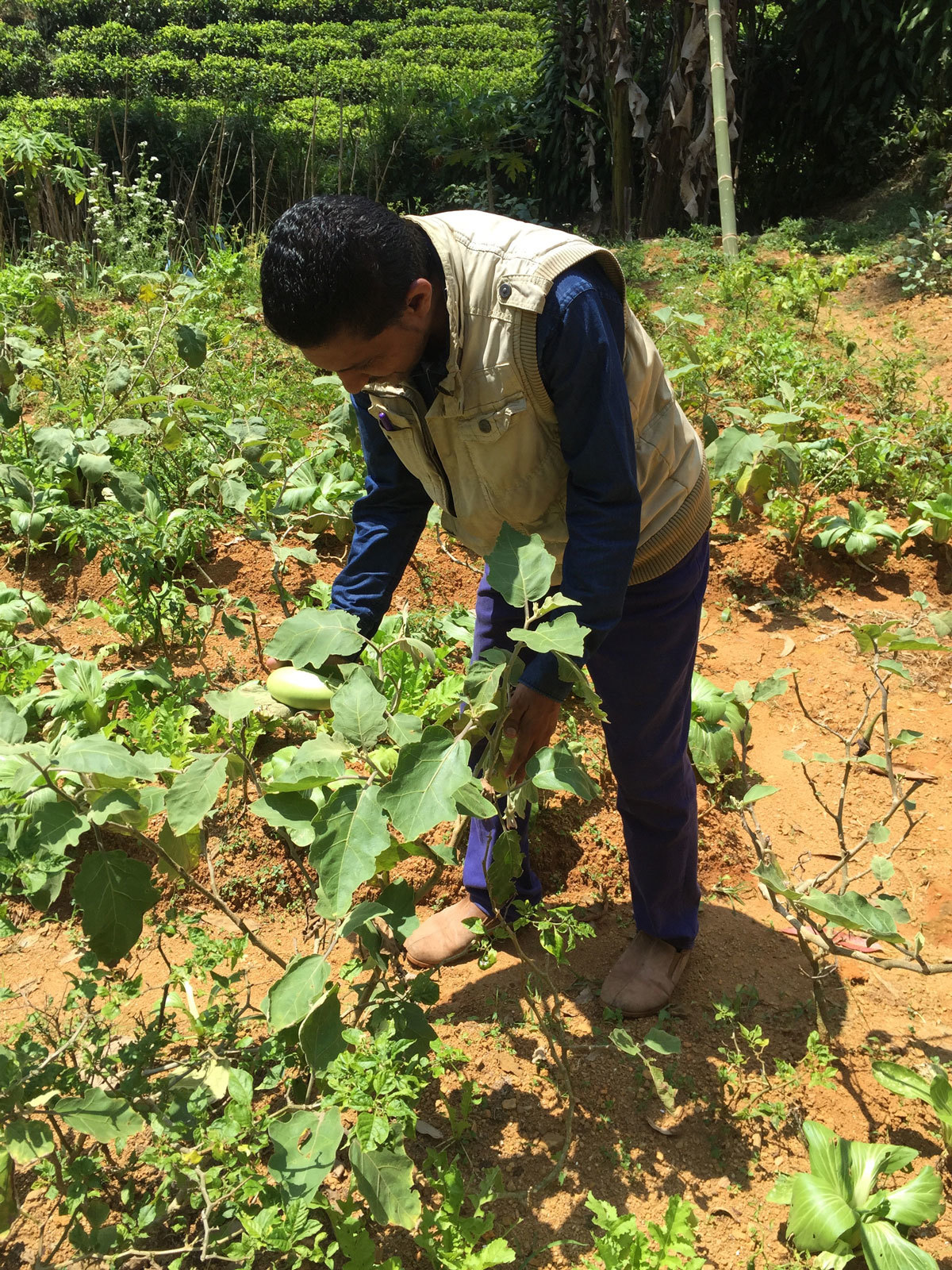 After 7 hours of winding driving, pulling a dead monkey out of the road, drinking fresh baby coconuts, and getting our first leech bites, we reach Southern Hill Country. When we pull up to his house, Mahendra Peiris comes out dressed head-to-toe in purple. He is the sustainable farmer we came to Sri Lanka to profile.