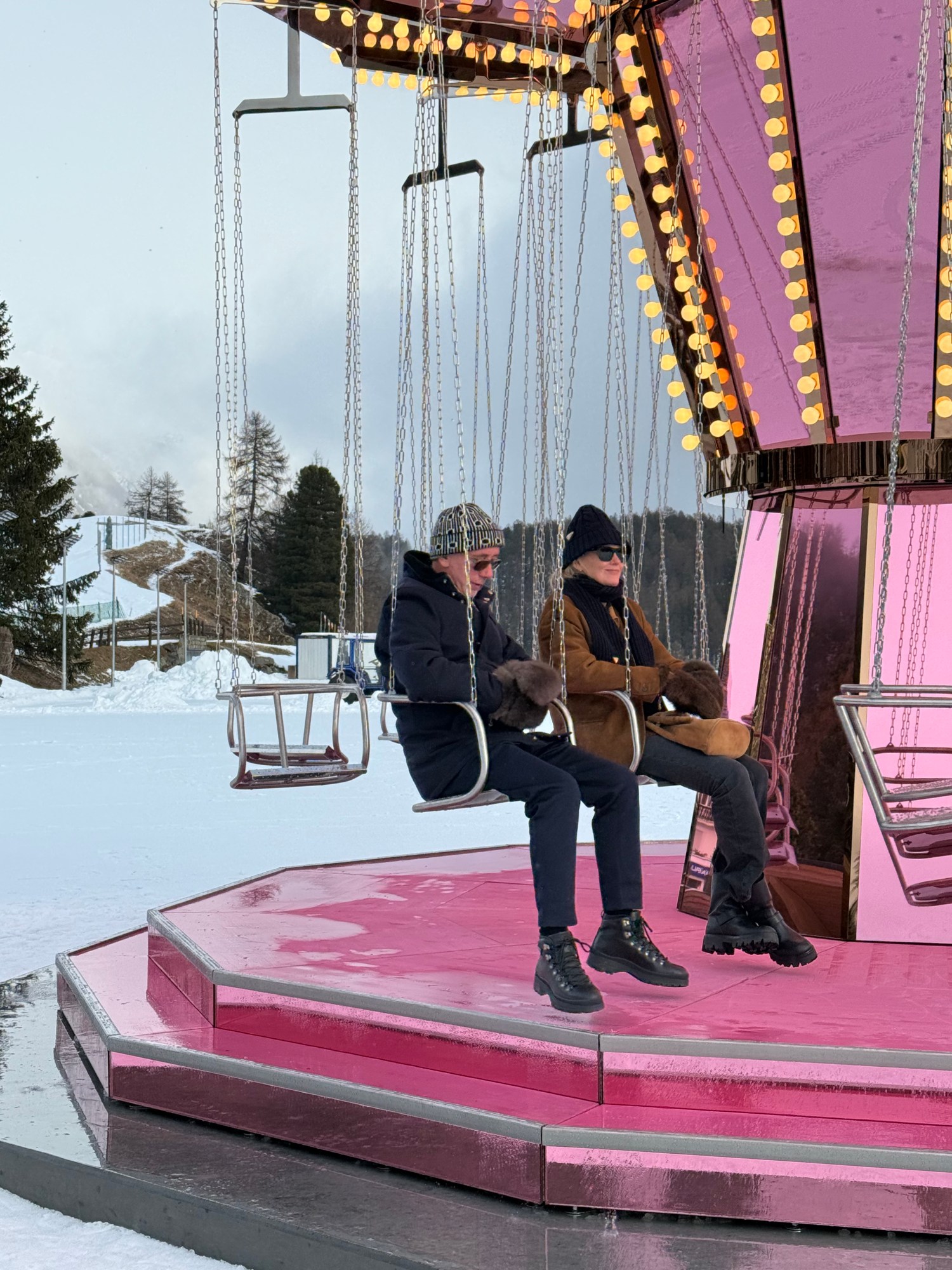 It’s foreign, but it connects. St. Moritz is about leisure, wealth, visibility. The carousel is shiny, jewel-like, but also a machine. You’re exposed when you sit on it. It doesn’t resolve into one meaning. It contradicts itself. You’ve talked a lot about fun in your work.