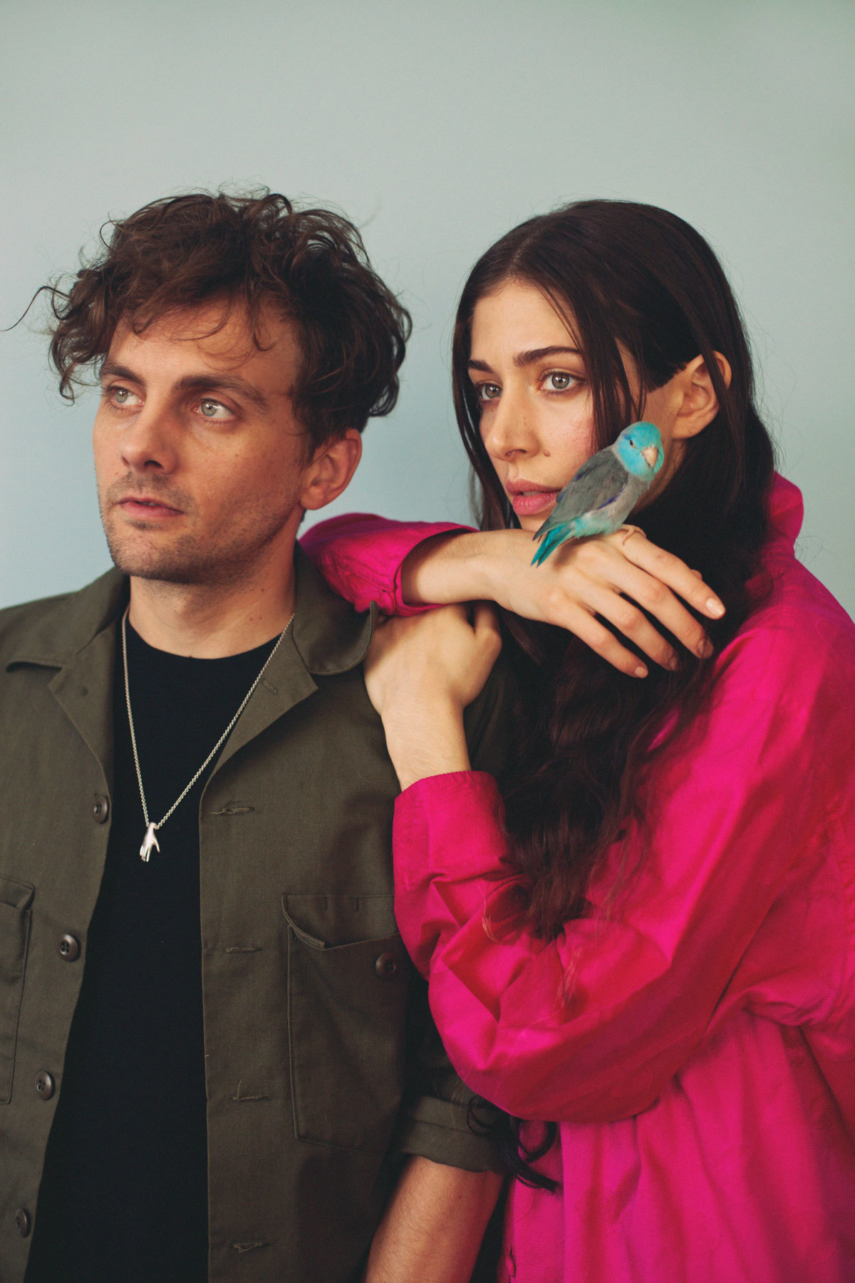 The three of us sat in a friend’s East London home, watching as her blue bird flew around the living room. Caroline loved it. She had a bird growing up and barely batted an eyelid when it landed on her mid-interview, cradling it to her face. We chatted to the sounds of obscure Japanese opera, with Patrick curled up on the sofa and Caroline cross-legged on the floor; her beautiful flowing top bunched up around her. Handmade by one of her friends, the sleeves, she told i-D, were intended to tie in with the album title.