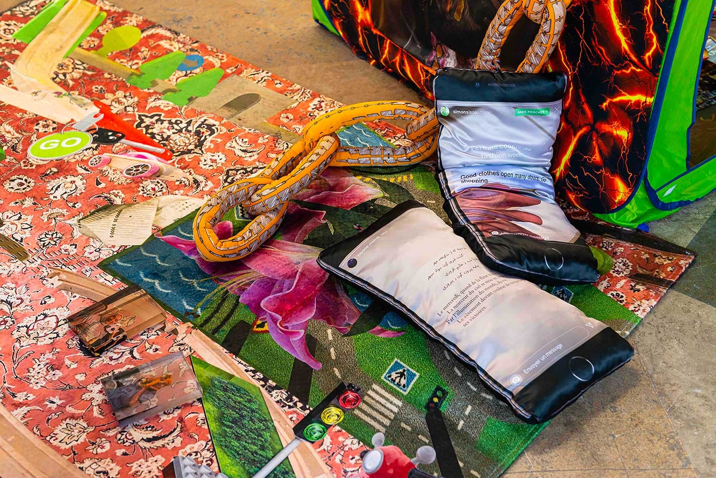 French-Iranian artist Chalisée Naamani has porous Parisian and Persian roots. Her practice is similarly hybrid: collaging artisanal materials, reinventing textiles, and rethinking iconography and memorabilia. It’s also hugely shaped by the socio-political turmoil in Iran. “We are full of hope and despair at the same time,” she says, intently following the repression of protestors and their bravery from her native Paris. “It’s hard to watch a young generation make sacrifices, but what’s happening is powerful.”