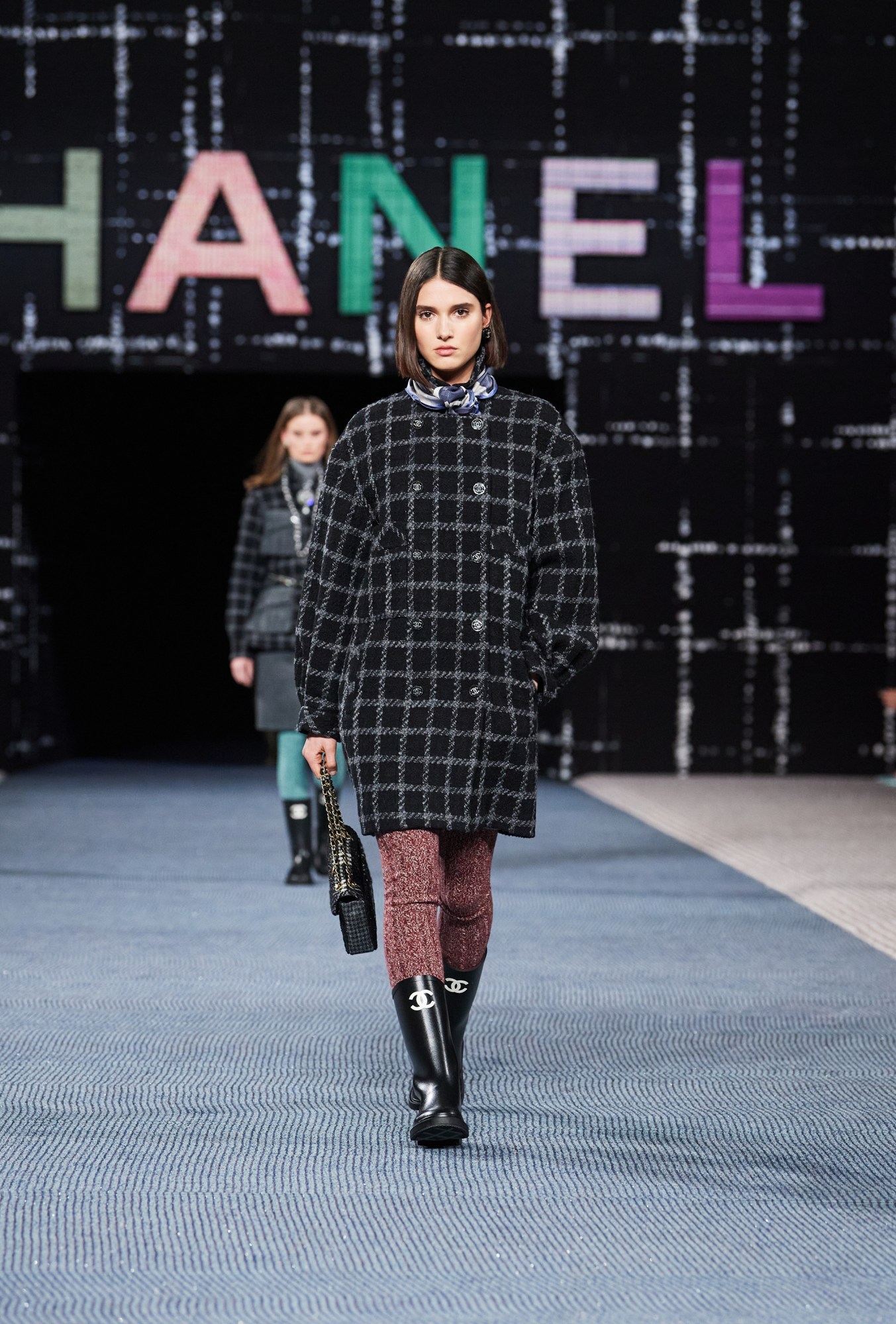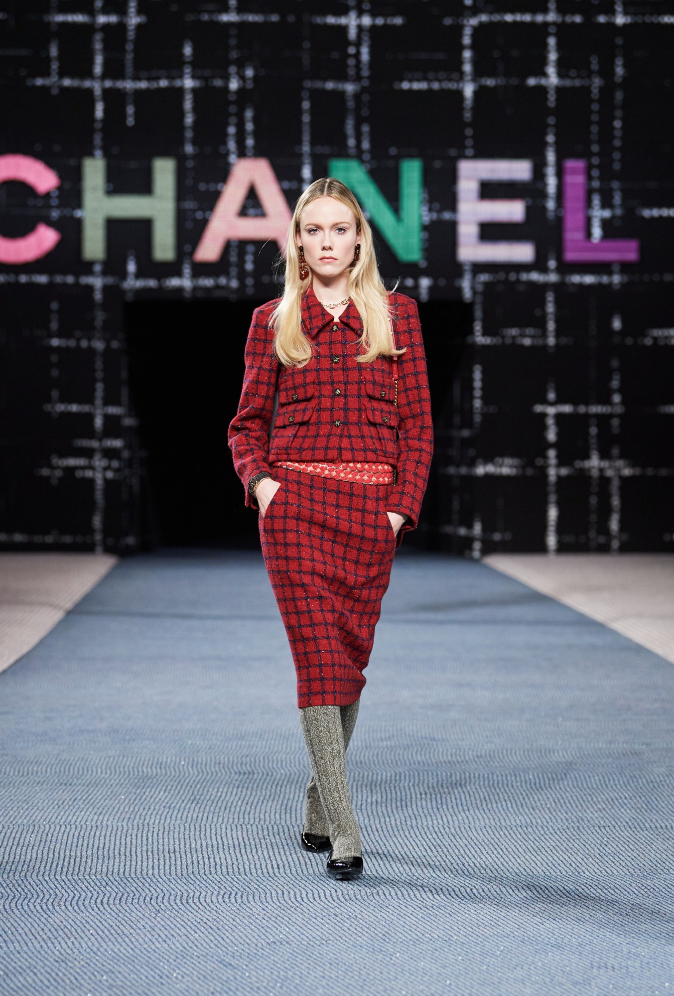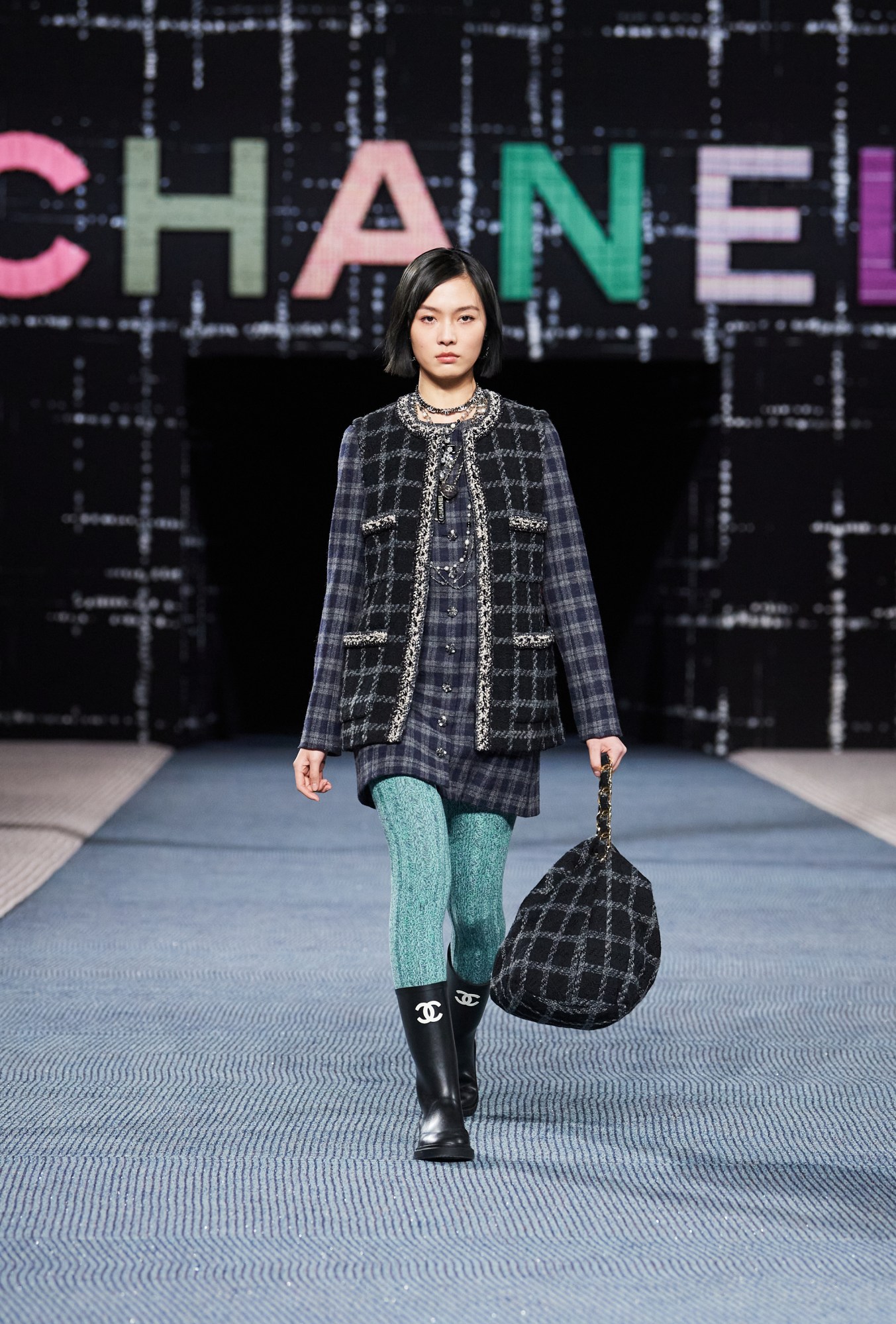 “There’s nothing sexier than wearing the clothes of the person you love,” Virginie wrote in a statement. “Of course, I’m fascinated by this ever-contemporary gesture. And it’s Chanel that renders the tweed feminine.” Hence, tweed was everywhere. The high walls were piled high in the stuff, the letters of Chanel emblazoning the catwalk, and even the seats, invitations and, of course, the collection itself. It came in myriad styles, such as cargo-pocketed utilitarian jackets, bustier dresses, bright overcoats, in Modish miniskirt suits and slouchier bumpkin bombers. The overall look was one of ease with plenty of colourful jewel tones, and a sense of comfort. After all, back when Coco borrowed from the boys and turned tweed into a womenswear staple — she did so in rebellion of wasp-waisted, corseted silhouettes. A century later, the speckled tweed suit — and the technical wizardry that Chanel can do with it — remains a hallmark that few can do better.