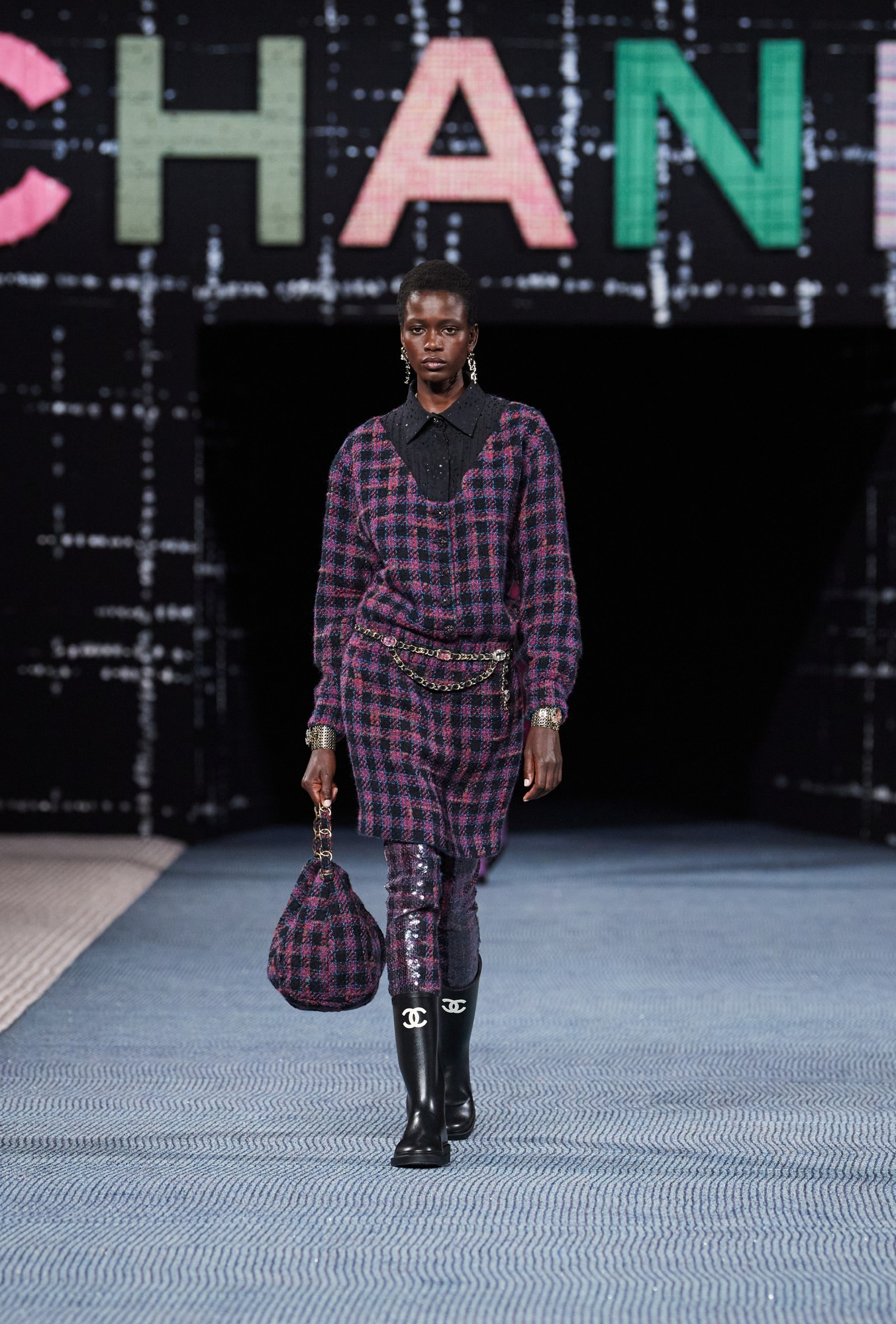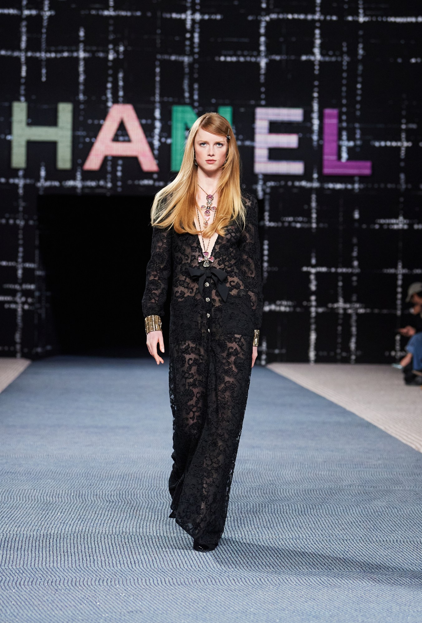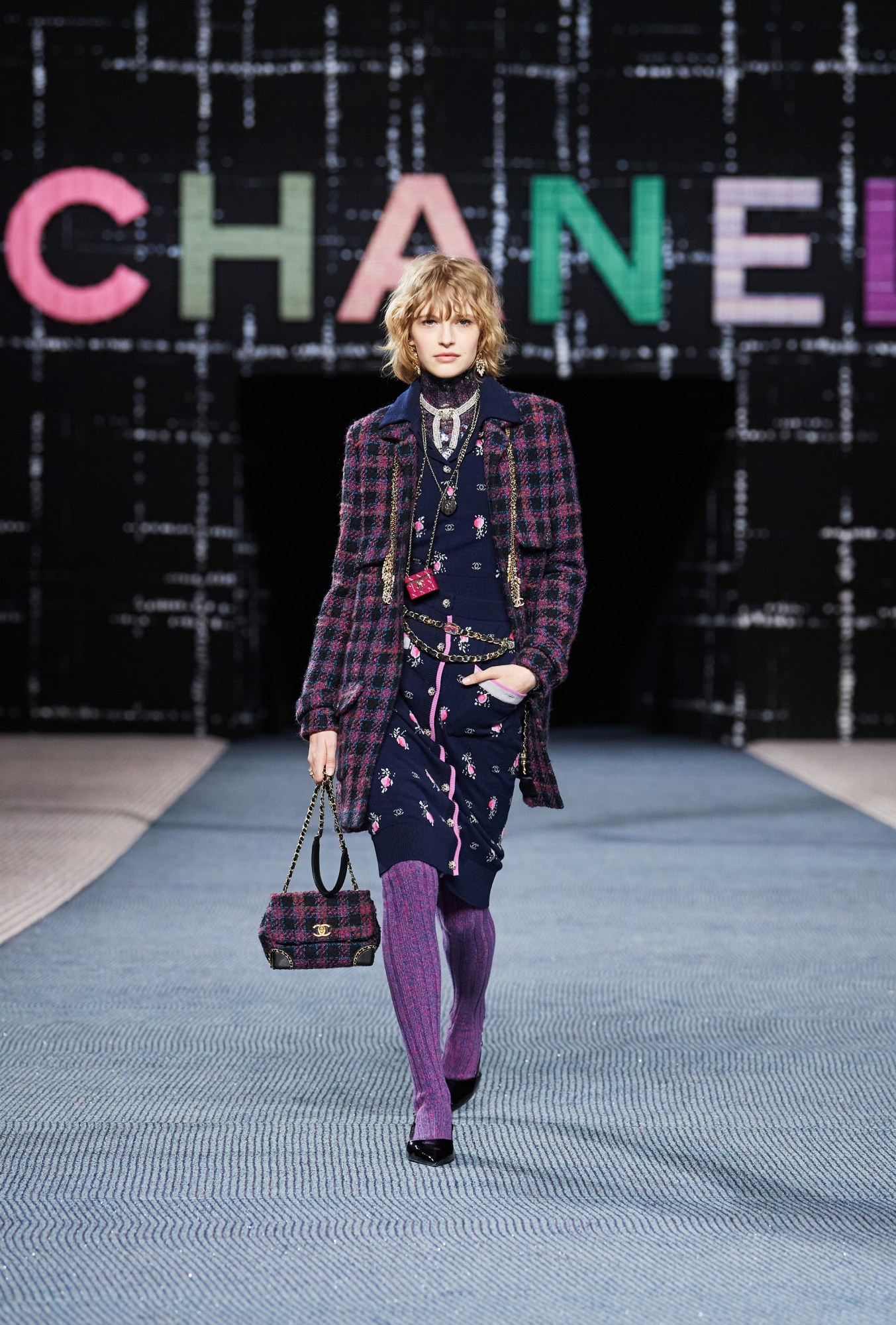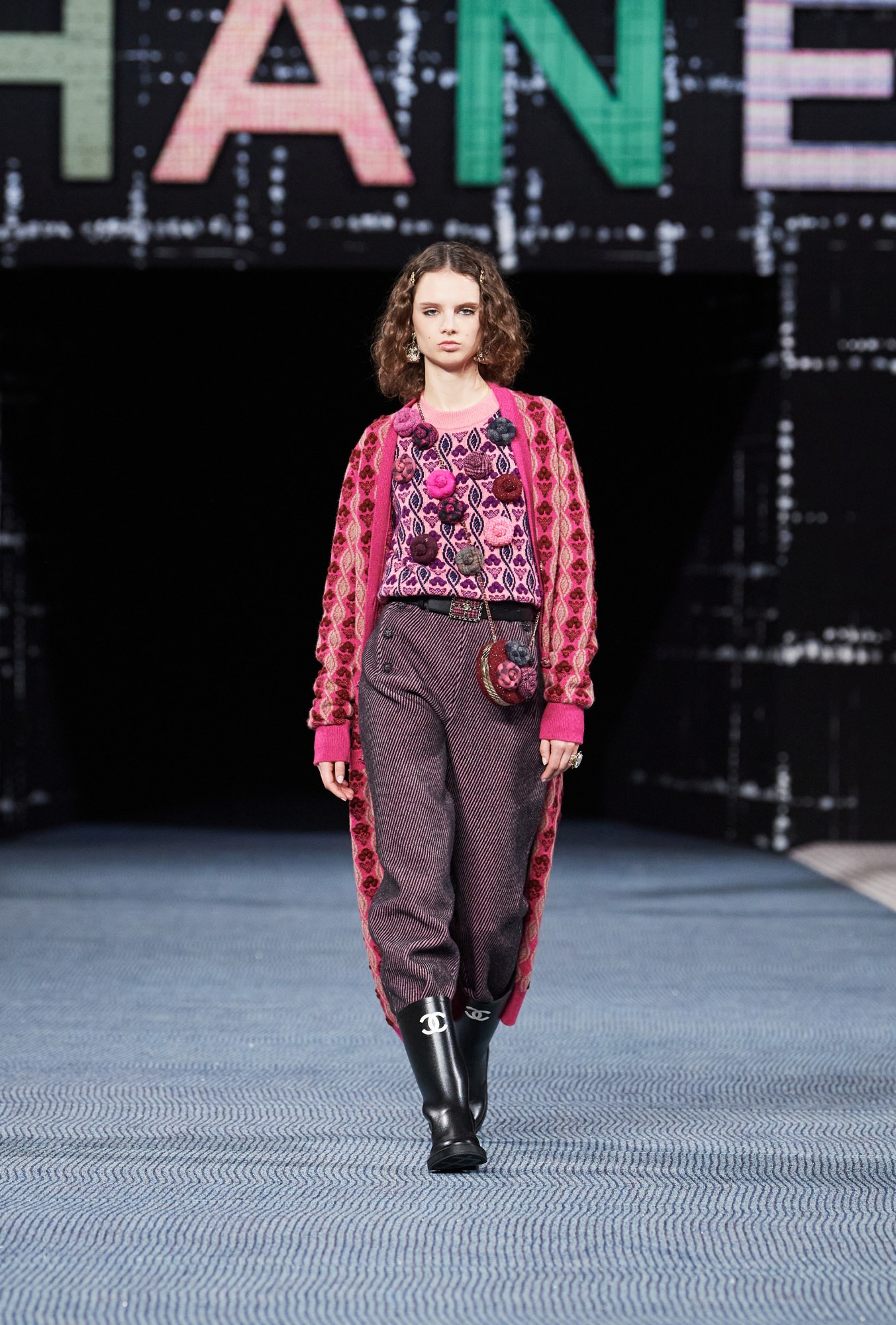 “There’s nothing sexier than wearing the clothes of the person you love,” Virginie wrote in a statement. “Of course, I’m fascinated by this ever-contemporary gesture. And it’s Chanel that renders the tweed feminine.” Hence, tweed was everywhere. The high walls were piled high in the stuff, the letters of Chanel emblazoning the catwalk, and even the seats, invitations and, of course, the collection itself. It came in myriad styles, such as cargo-pocketed utilitarian jackets, bustier dresses, bright overcoats, in Modish miniskirt suits and slouchier bumpkin bombers. The overall look was one of ease with plenty of colourful jewel tones, and a sense of comfort. After all, back when Coco borrowed from the boys and turned tweed into a womenswear staple — she did so in rebellion of wasp-waisted, corseted silhouettes. A century later, the speckled tweed suit — and the technical wizardry that Chanel can do with it — remains a hallmark that few can do better.