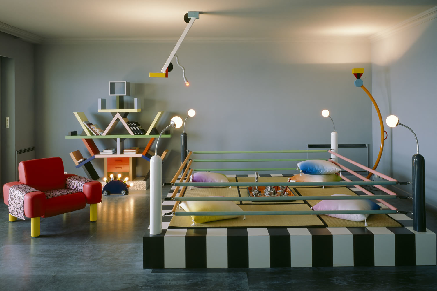 Next month, Sotheby’s will auction hundreds of artworks from David Bowie’s personal collection. Presently on view in Hong Kong, the pieces included paintings by Damien Hirst and Jean-Michel Basquiat (one of which is expected to sell for over $3 million) and sculptures by Marcel Duchamp. Also on the block: over 100 pieces of Bowie’s furniture, much of which is the idiosyncratic work of the Memphis Group, the Milan-based design collective that made waves in the mid 80s with its bold colors and playful mentality. Though its style is divisive (The San Francisco Chronicle once called Memphis “a shotgun wedding between Bauhaus and Fisher-Price”), the group’s postmodern designs have proven massively influential in fashion, film, and, arguably, fast food.