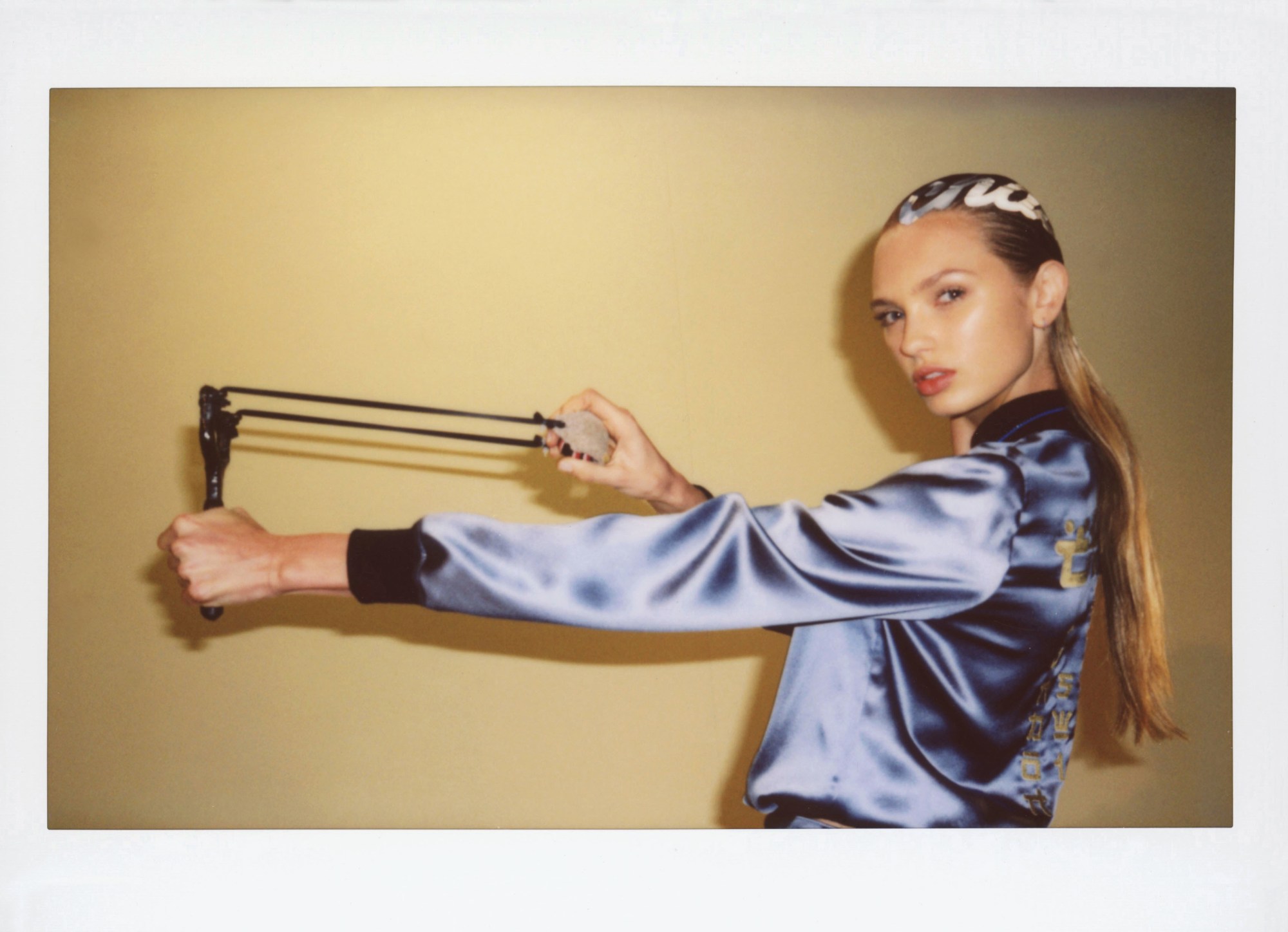What better way to launch a collection than having it modelled by a host of your best model friends, which is exactly what Charlotte Stockdale and Katie Lyall did when they introduced their luxury tech accessories label to the world last week. Dressed in a limited edition of silk evening tracksuits, emblazoned with the word ‘chaos’ on the back, the styling duo rounded up the likes of Edie Campbell, Karlie Kloss, Dilone and Taylor Hill to prance around in a video, piercing balloons, hugging giant teddies, swinging baseball bats and brandishing the Chaos collection of portable chargers in eye-popping colours and sumptuous phone cases, adorned with metal zips and small charms that allow you to wear your phone around your neck. While the initial phone accessories are readily available, you’ll have to wait till next year for those customised silk garms. In the meantime, here are some intimate polaroids of the girls in action to whet your appetite.
