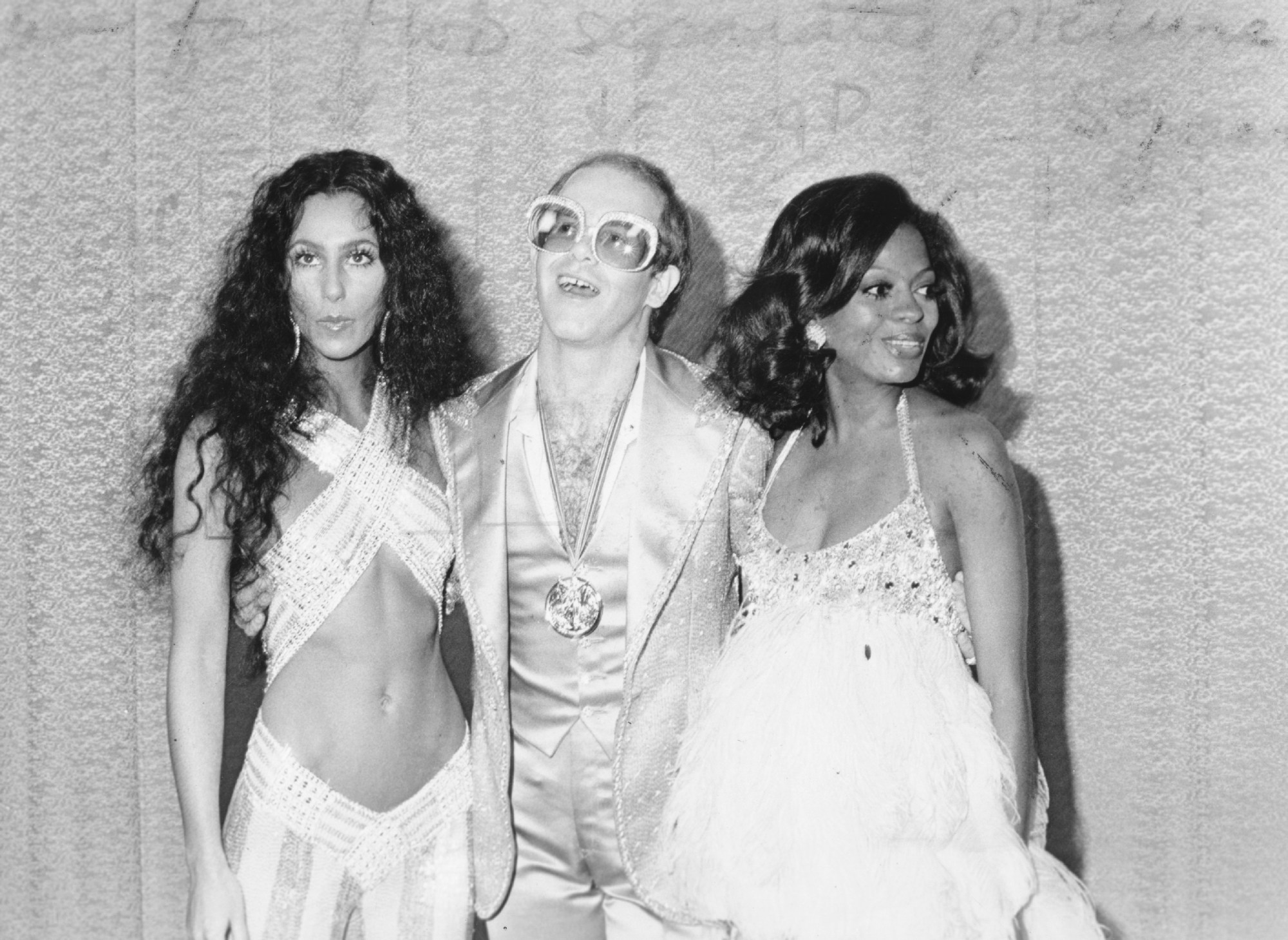At the Rock Music Awards in 1975 Cher wore a sequined ensemble with a barely-there bodice to present fellow musician, Elton John, with an award for Rock Personality of the Year. This 70s sequin two-piece look is one of Cher’s most referenced outfits. Emily Ratajkowski even put her own spin on the iconic number, with a very ‘naked’ two-piece designed by Peter Dundas, for the 2019 Met Gala.
