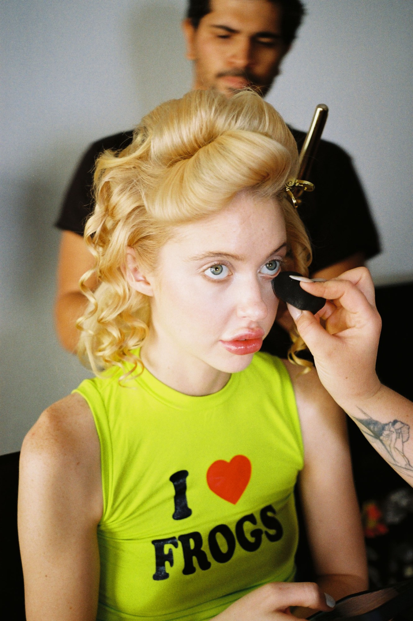 Ahead of the event, we sent photographer Miriam Marlene over to Chloe’s place in Los Angeles to capture her getting ready for HBO’s very own Emmys party, with the help of her stylist Tabitha Sanchez, hair stylist Glenn Ellis and makeup artist Alex French — the latter who who dabbled in rhinestone usage and went heavy on Chloe’s “favourite lip product of all time: Urban Decay’s Lip Bond in the colour Unbreakable”.