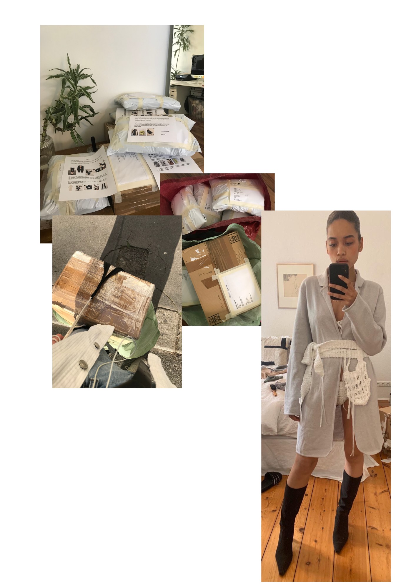Despite the cumbersome, perhaps, inorganic nature of undertaking a collaborative creative endeavor entirely online — think the 40 minute time limit of a Zoom call, the unpredictability of international shipping services — the virtuality of it all did have its upsides. “The modelling cast expanded. It was very international,” Seewald says. “If I had the original show in Vienna, the cast would be just Viennese girls.” With the virtual world as her oyster, Seewald was able to cast talent from Denmark, England, Germany, Spain and France, mostly through Instagram.