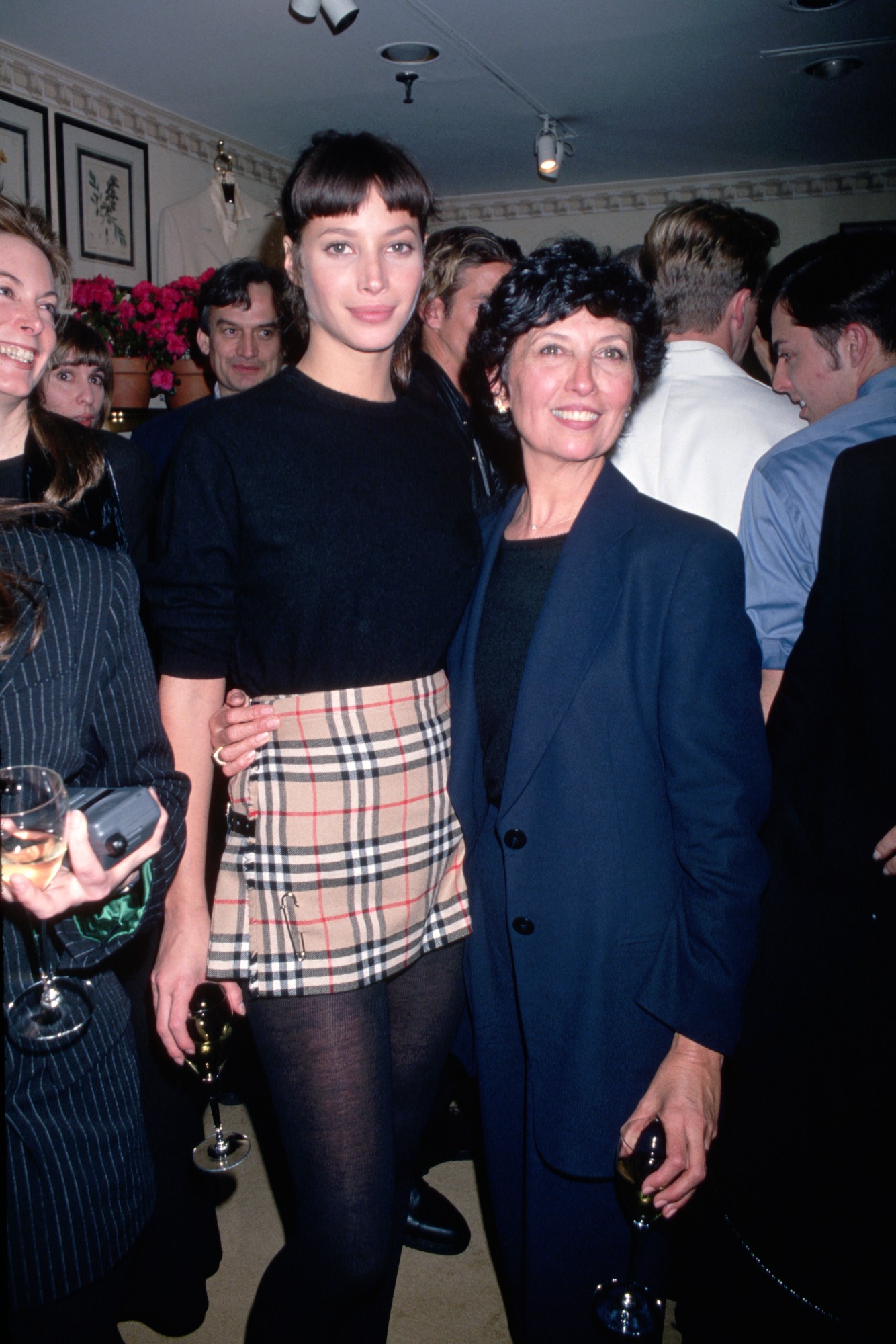 Christy was born in Oakland, California, the middle child of three sisters. At age 14 — in the early 80s — she was discovered by photographer Dennie Cody while taking horseback riding lessons in Miami, Florida. Throughout high school, Christy modelled part-time before moving to New York City at age 18 to pursue the profession full-time. It was there she would launch her legendary modelling career. Here, she poses backstage at a Burberry fashion show, wearing one of the label’s Nova Check miniskirts, with her mum.