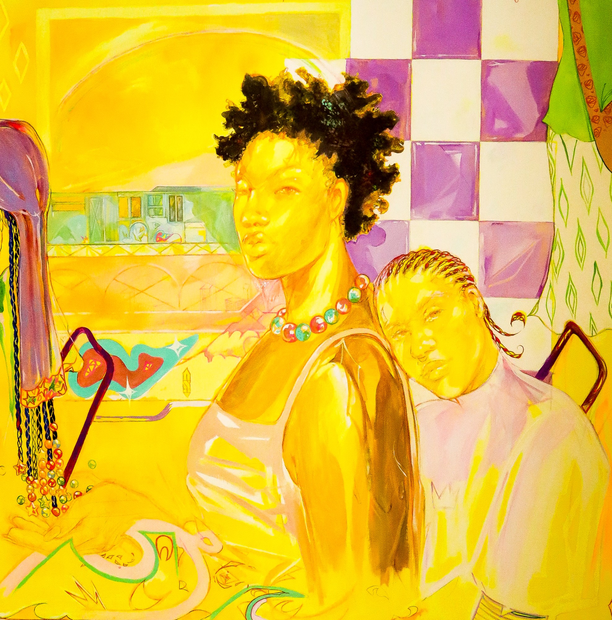 This is the first in a series of works Cierra has curated for her latest show, A Color Story, on view through October 12th featuring works by Lindsay Adams, Nola Ayoola, Quinci Baker, Kwamé Gomez, Lewinale Havette and Lex Marie. “I really wanted to do a show that explores color narrative, because when artists speak about color theory, they’re talking about mixing colors. When I’m thinking of color theory, I’m thinking of color symbolism in movies, in visual culture, in art therapy and the way color impacts our psyche.”