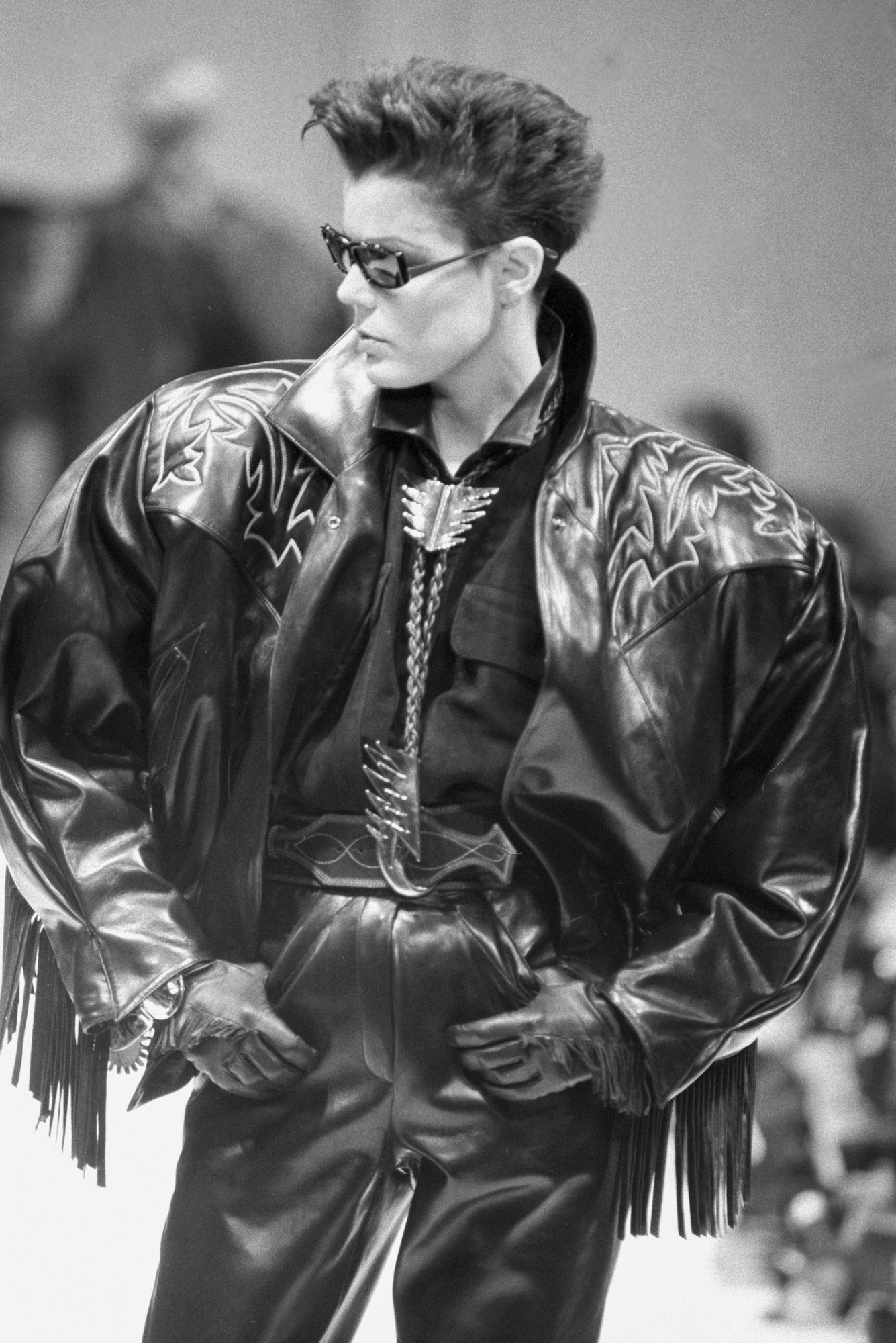 Now, when we think about the 1980s, we think about a distant, long-dead era of fashion that nonetheless laid the groundwork for our own. Fashion designers became celebrities with adoring fanbases and widely recognised names. Brands leant in hard on the power of spectacle, putting on shows that were more like concerts, encouraging a wide cross-section of people to buy into the dream. Inspiration often came from the past in the form of references to Old Hollywood and 1940s and 50s couture silhouettes. Androgyny crept in too, with many designers melding elements of masculine and feminine dress, or mainstreaming clothing styles from queer subcultures including fetish wear. It was a time of new horizons and heightened excess, and Montana’s clothes were emblematic of this operatic age.