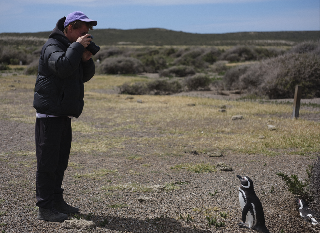 The second reserve they visited on the South-Eastern coast, Estancia la Esperanza, is managed by the Fundación Patagonia Natural. Here, southern right whales and llama-like guanacos roam wild. This is where they met Alan, a ranger-slash-saxophonist who “spends his time counting whales,” Jonny recounts, “he’s in his tiny little whale counting station and plays his instrument, and then watches the whales that are also making sounds under the water. It’s really beautiful and poetic”. Harmonious moments like this seem to have pervaded the trip. “I remember at one point we got to where we were going on the Somuncurá plateau and I looked around and it was just horizon in every direction,” Colin recounts of one early morning escapade.