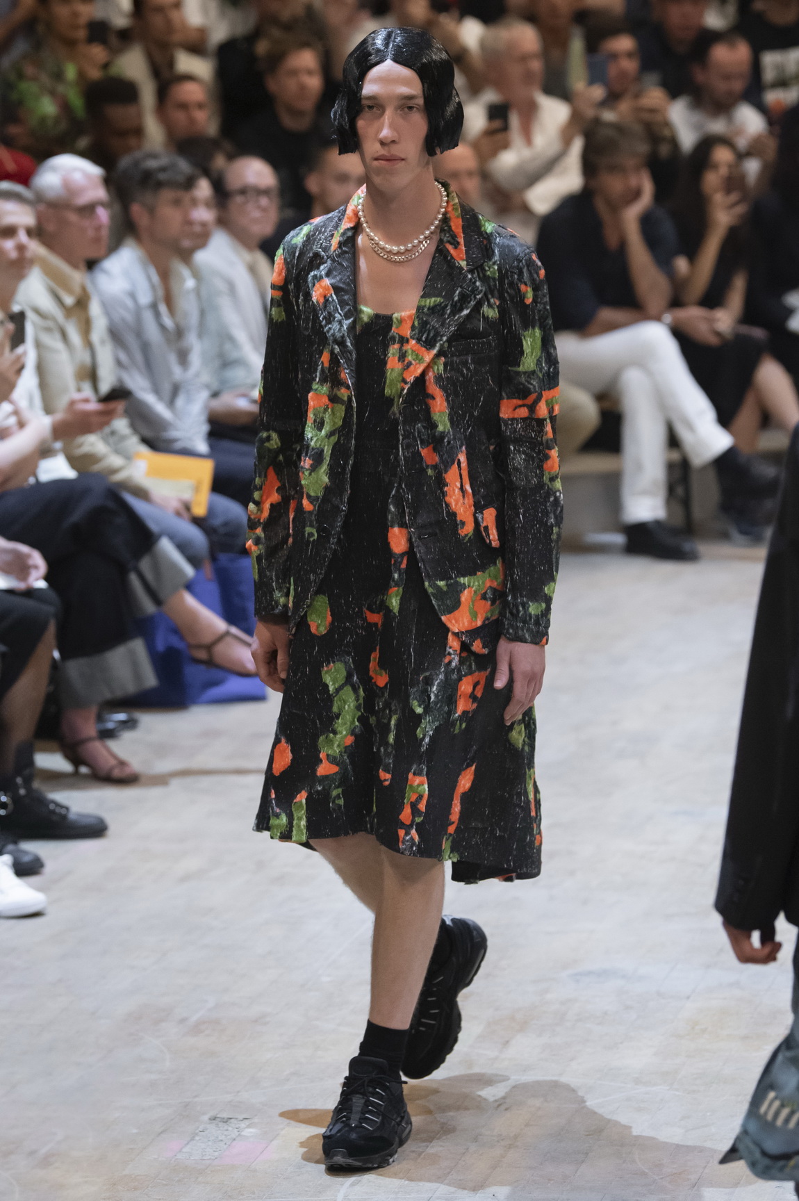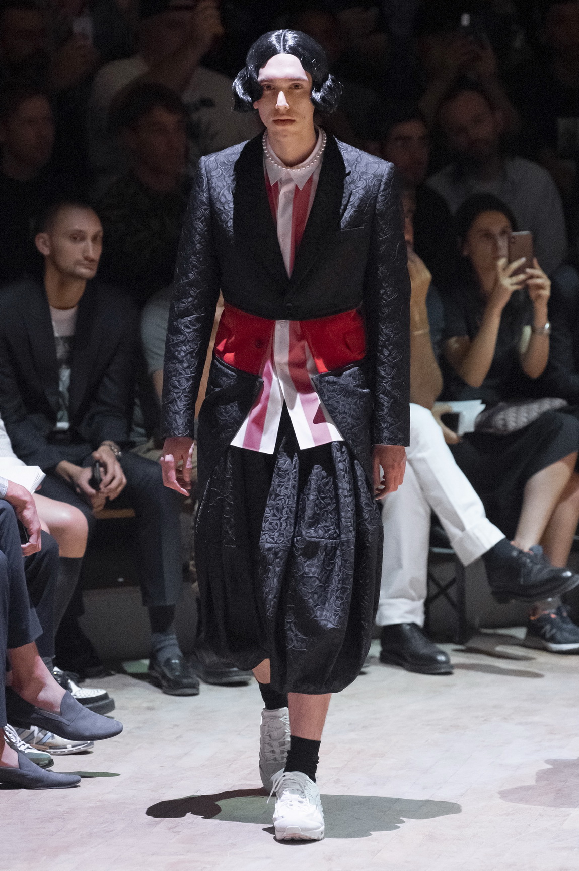 We might have to wait until December for the world premiere of Orlando, the new operatic interpretation. Composed by Olga Neuwirth — the first female composer to be commissioned by the Vienna State Opera in 150 year — the production will feature costumes by Comme des Garçons. But while we wait this collection teases a seductive sartorial celebration of freedom in identity politics that feels just as radical. While the likes of Virgil Abloh at Louis Vuitton and Jonathan Anderson at both JW Anderson and Loewe have rubbed out the binary, none have done it quite as fearlessly and as fabulously as Rei just did.