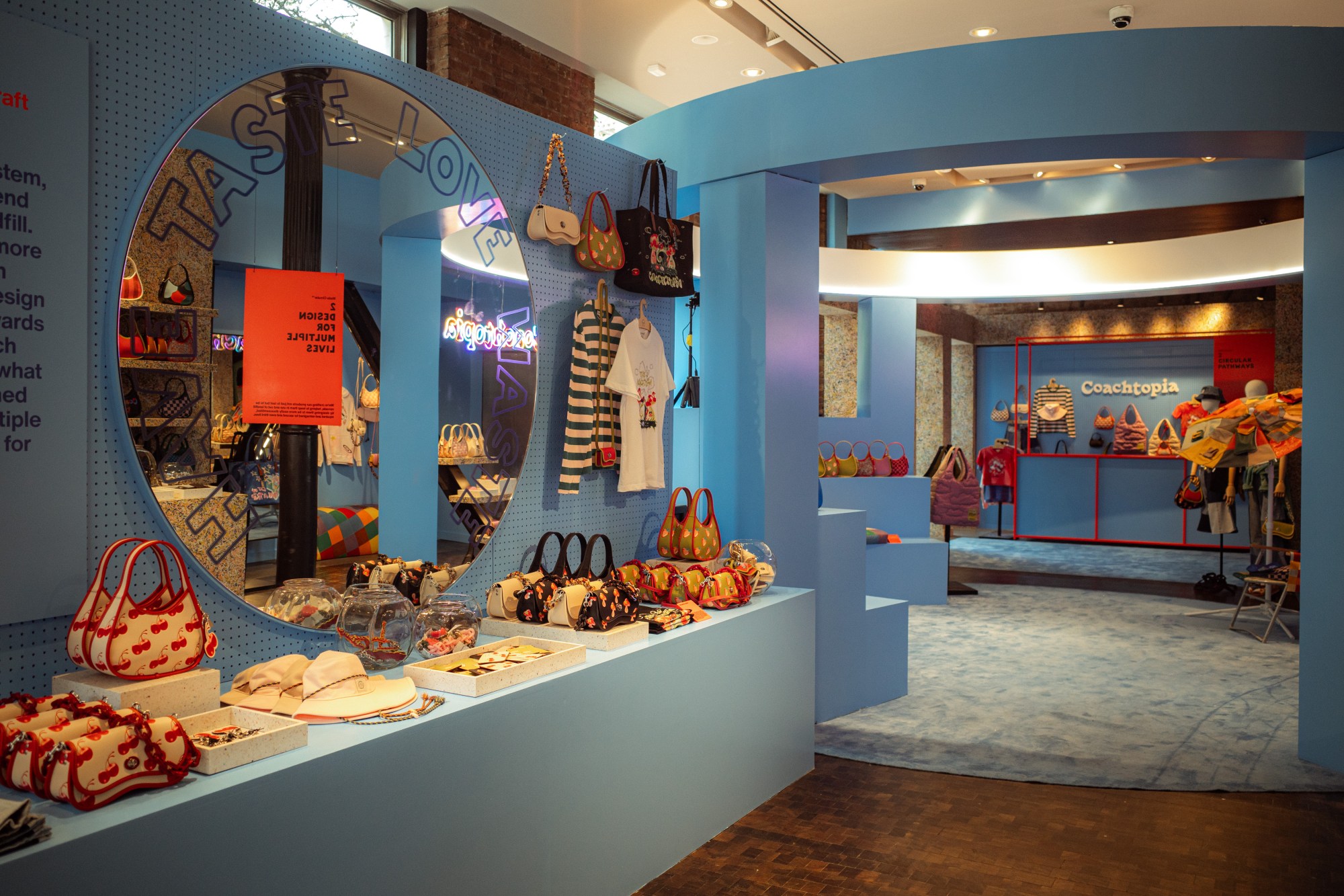 Last Thursday, Coach threw a cute little party on Prince Street to celebrate the opening of their Coachtopia pop-up shop in SoHo. Showcasing their new sub-brand launched earlier this year, which focuses on circular craft and collaborative creativity, the New York store was transformed to reflect Coachtopia’s refreshing and imaginative vision — that of transitioning towards a more circular economy in fashion, by producing ready-to-wear, bags and accessories from recycled materials and leather fabrics made from at least 50% waste. Peer into the shop and you’ll see Coachtopia’s perfectly practical Ergo bags, in brightly coloured leathers and playful prints — graphic cherries, berries and checkers — as well as one-of-a-kind pieces by artists and Coach collaborators Skilset and Nicole McLaughlin, but it’s best you head on down and check out all the new goodies yourself. ND
