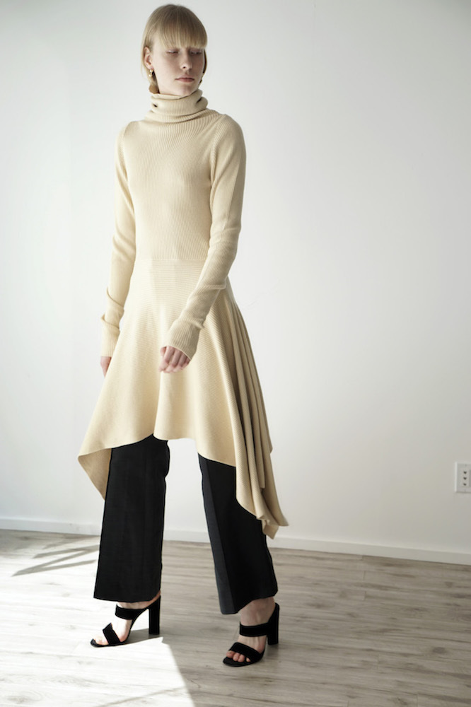 Mary’s fall/winter 15 offering features pieces that Ping fans will recognize from pre-2011 collections. “It’s always more about an attitude that has to get expressed. But idea-wise [fall] was about keeping signature silhouettes and adapting them for now. Materials are also paramount.” The results are cashmere leggings, reversible quilted bomber jackets, zip-front jumpsuits and silk dresses with ziggurat-like edges. The common thread is Mary’s sensitivity to fabrics (Swiss cotton, the softest silk) and her witty sensibility — qualities Mary thanks her maternal grandmother for imparting.