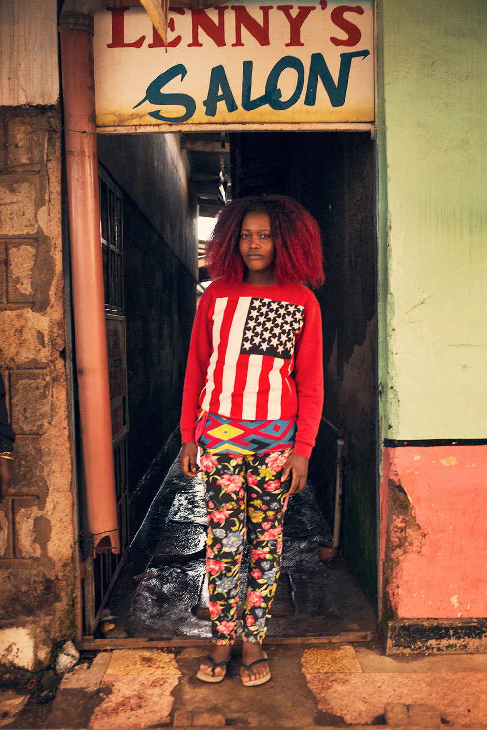 Flea Market Nike top customised with flag, flowery leggings.