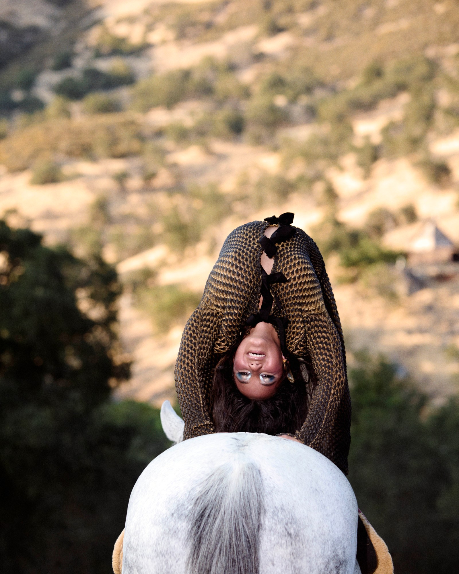 “Meaning comes from recognising what is still precious in life—the things and people that can’t be replicated, that have to be experienced physically and personally. I’ve spent the past few months speaking less and listening more. I wanted to make things that can inspire, and that can never be replicated by fast fashion,” Roseberry says of this collection. Aptly, in these pages, Harley Weir shot the Fall 2025 collection on the Riata Ranch Cowboy Girls—Spencer, Mellody, Aybrey, Ava, Lottie, and Lexi—a band of trick riders in California who share stables, horses, and the freewheeling spirit that Roseberry brought to the catwalk. “The women in my life are lone stars—there’s no one else like them, and there could never be. I hope they, and all women, feel the same about these clothes.”