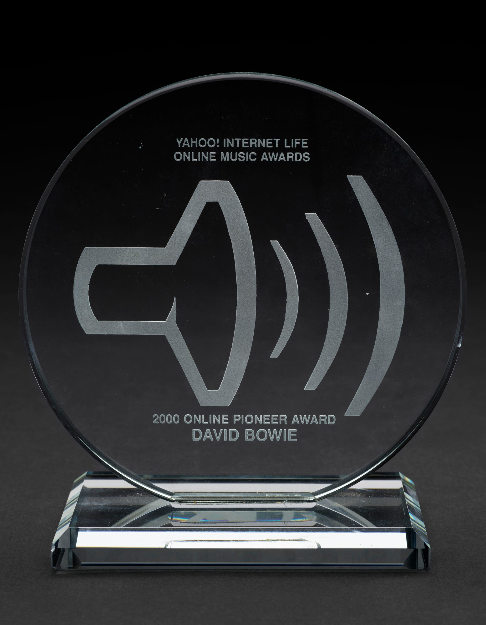 His Online Pioneer trophy from the Yahoo! Internet Life Online Music Awards