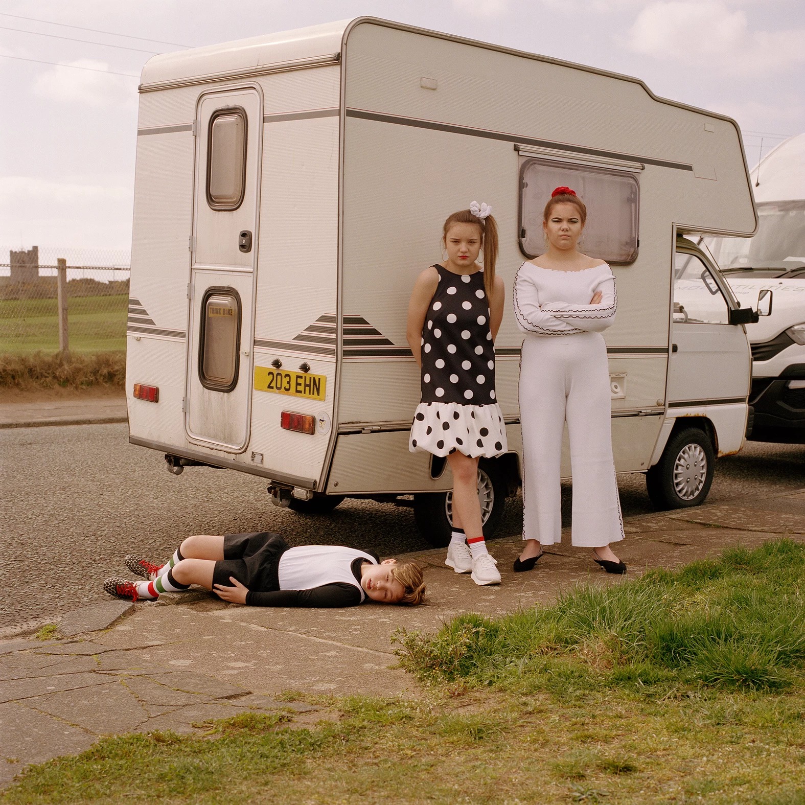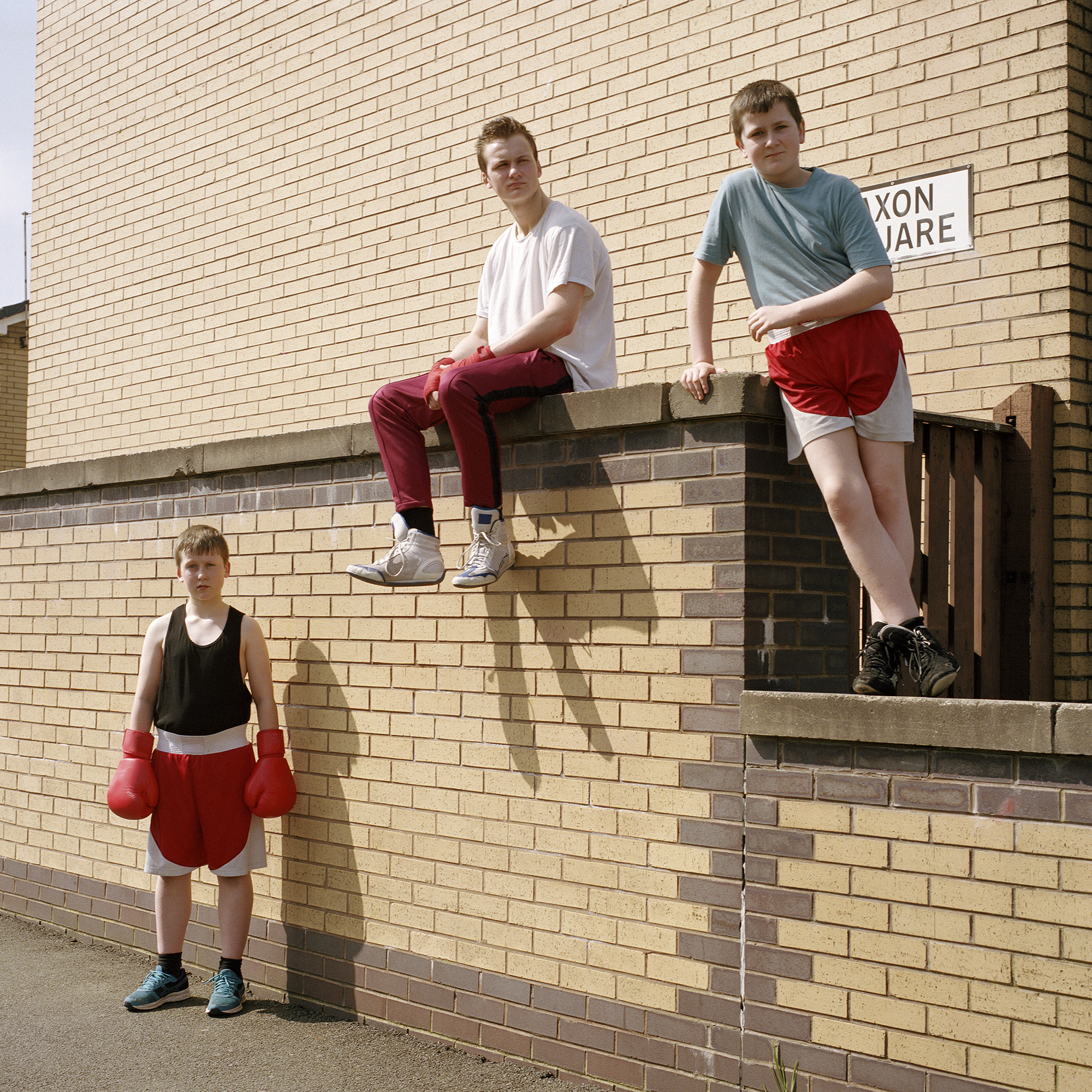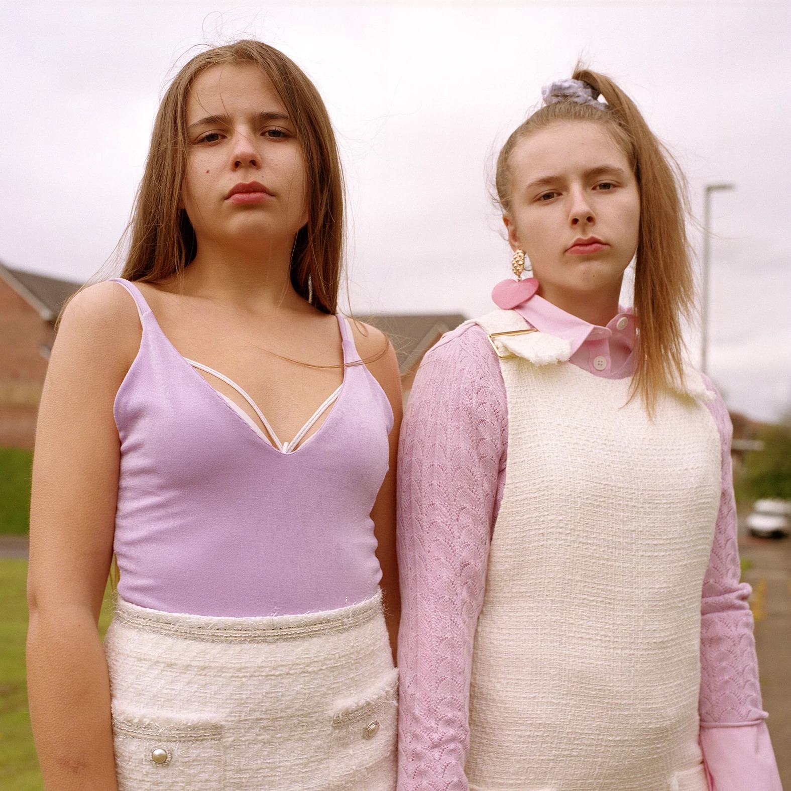 I didn’t quite realize how special the North, or North West, was until I moved away for university when I was 20. I’ve often said that the photographs I take pay homage to my upbringing. My photographs are informed by memories of my adolescence, and are inherently nostalgic — or at least they are for me. There are recurring symbols within my photography of the street and groups of people — particularly females, in the same or similar clothing, and of housing estates, suburban streets, and a particular color brick or pebble-dash back-dropping, strong-looking cliques who are representative of people from my younger years.