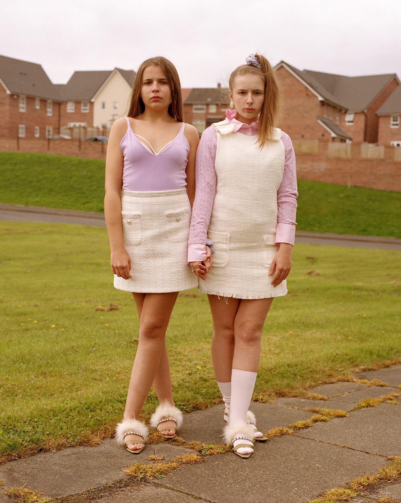 I didn’t quite realize how special the North, or North West, was until I moved away for university when I was 20. I’ve often said that the photographs I take pay homage to my upbringing. My photographs are informed by memories of my adolescence, and are inherently nostalgic — or at least they are for me. There are recurring symbols within my photography of the street and groups of people — particularly females, in the same or similar clothing, and of housing estates, suburban streets, and a particular color brick or pebble-dash back-dropping, strong-looking cliques who are representative of people from my younger years.