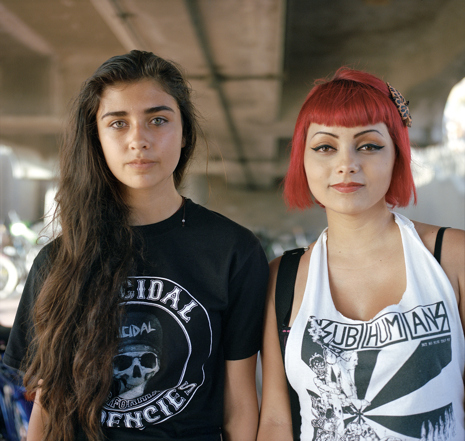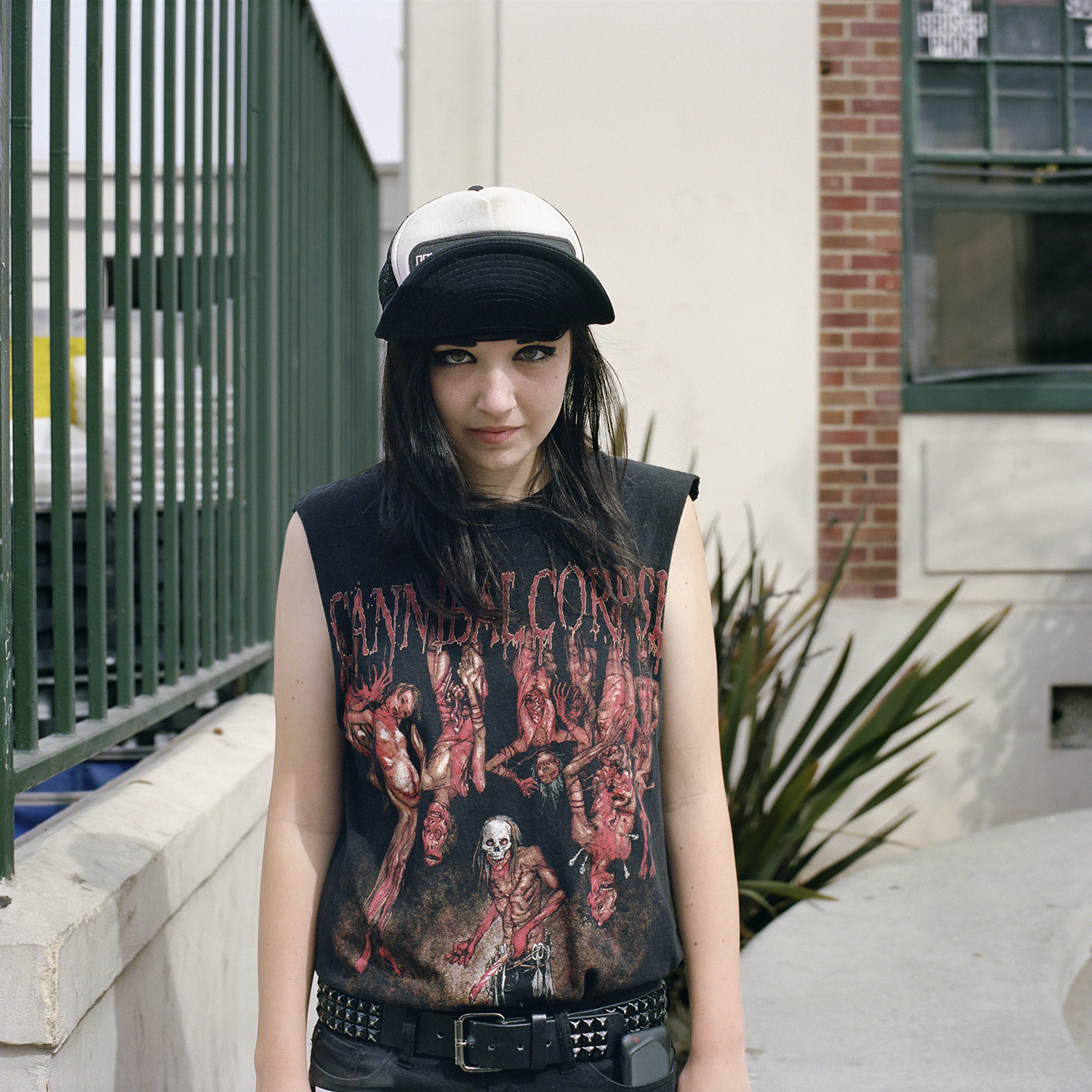 As a photographer, of course, she was thrilled to spot these young women in the street. Sometimes she would see girls wearing a shirt with a band she saw in the 80s and start a conversation. Sometimes the girls would be at skate events where they might recognise her husband Ed, a professional skater. “I would get excited almost to the point of startling some of the young women that I’d run-up to and ask if I could take their portrait,” she says. “My mouth would be running a mile a minute just explaining like, I love your look, you know, pointing out things that I love, like their hair, or their clothes or their makeup.”
