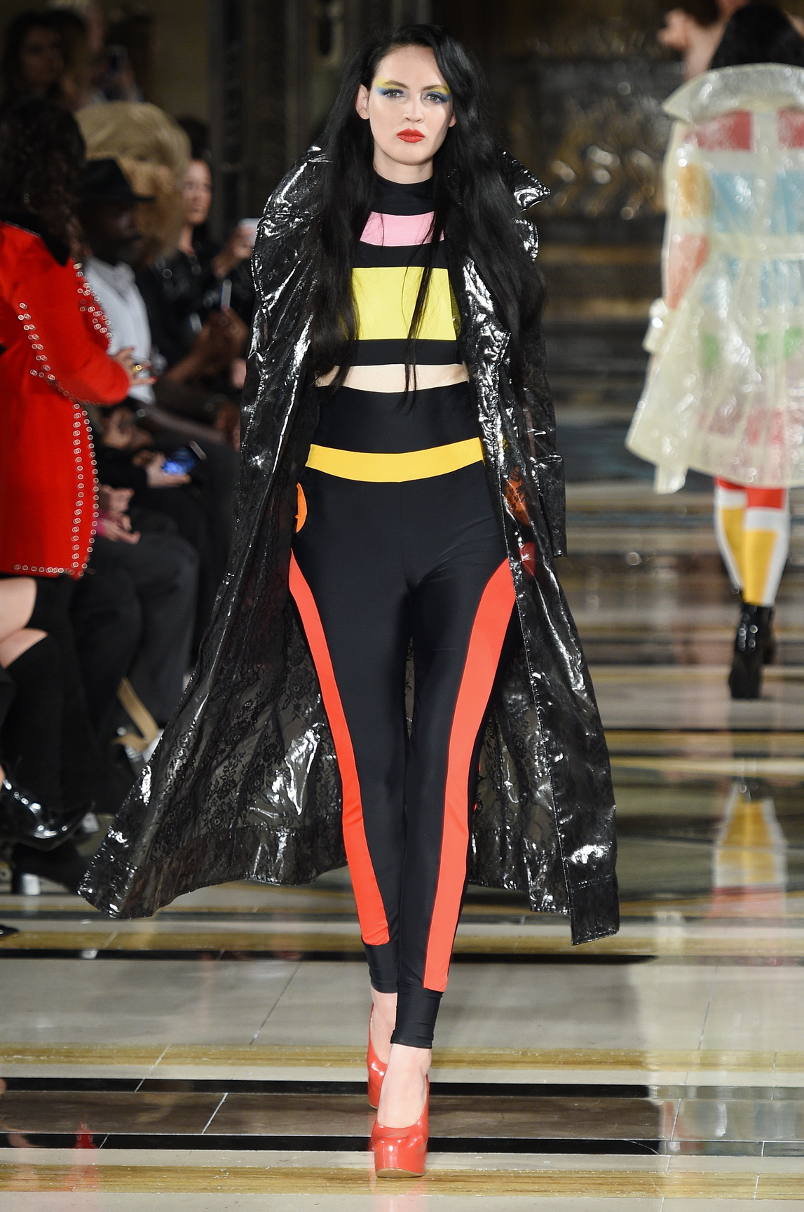 It soon gave way to kind of a best of Pam Hogg though, the Scottish designer riffing off the codes and silhouettes that she’s defined and made her own over her 30+ years in fashion. Geometrically patterned jumpsuits, equal parts fierce and cute, with a glam rock sensibility at their heart.