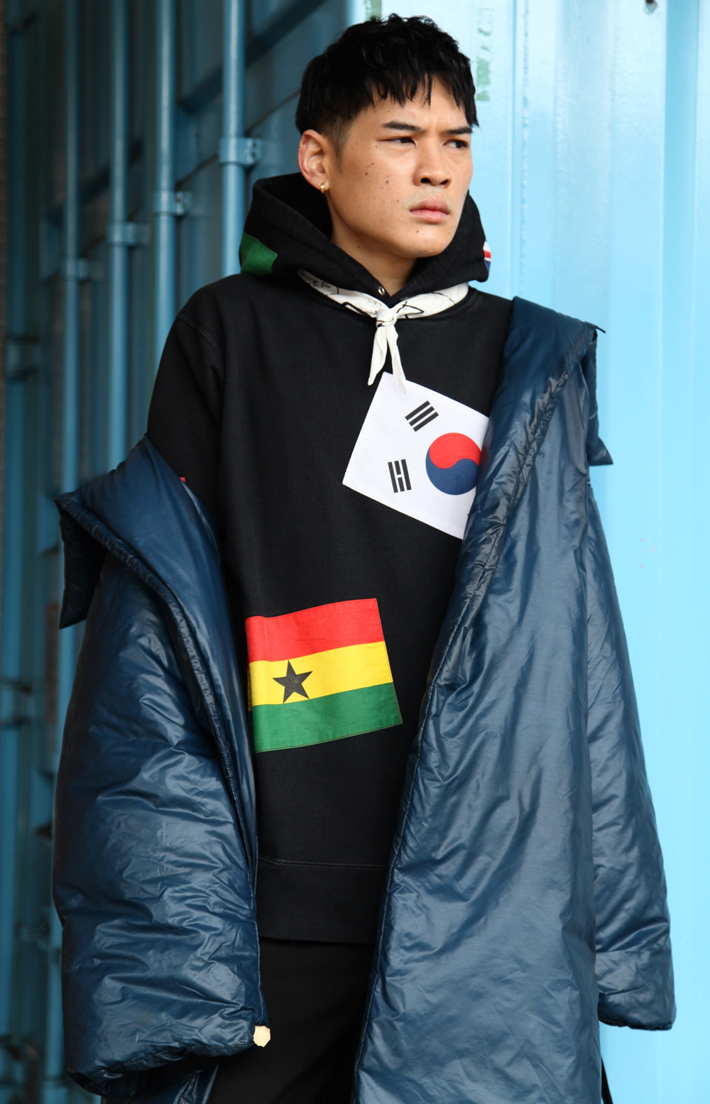 Margiela coat, Supreme hoodie, Lanvin trousers and Raf simons sneakers.