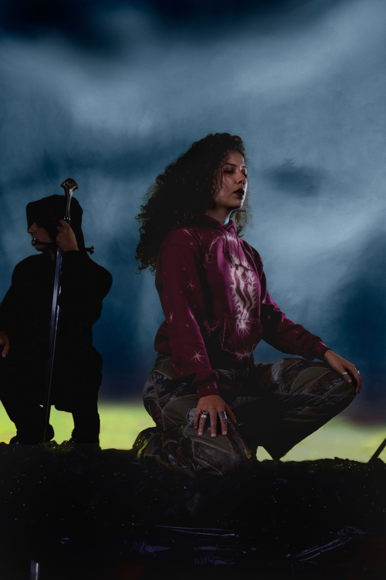 I wanted to add another layer of symbolism to the Ritual Hoodie story. This series is an ode to Tolkien of course! Being a huge fan of the medieval period and all the fantasy that came out of this time, I wanted to join this with a contemporary garment — a hoodie. We also wanted to keep the notion of an epic narrative, which is central to my work. It was very important to get my friends to model in this project. That way, it became a common quest. We looked at paintings to inspire the poses of the models. John William Waterhouse’s Pre-Raphaelite revival of the medieval figures; Edmund Leight’s paintings of knights; Queen Joanna the Mad, this haunting painting by Francisco Pradilla; Chiaroscuro Rembrandt masterpieces and many more.