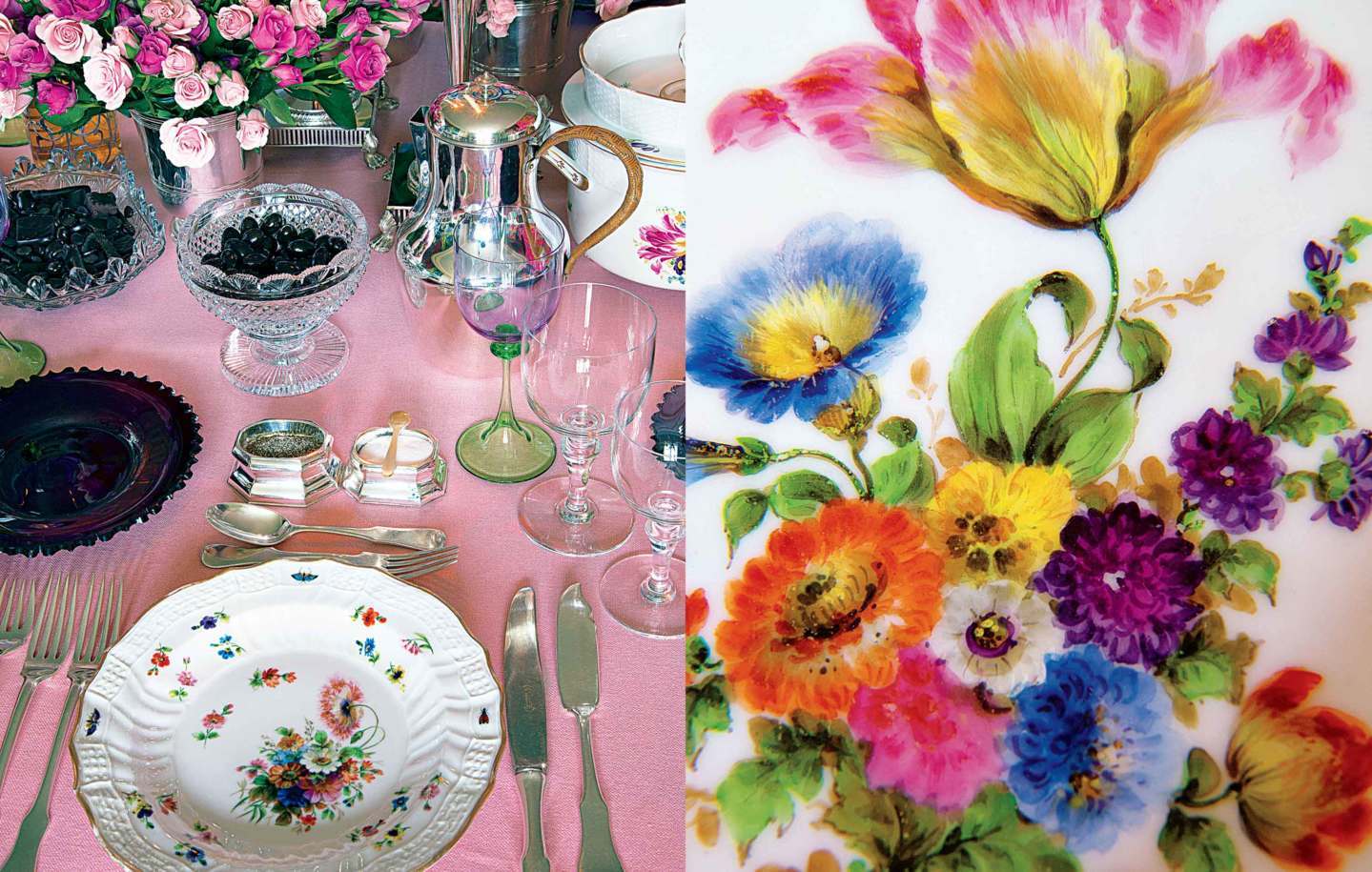 Valentino Garavani bevorzugt eine porzellane Terrine über einen ausladenden Blumenstrauß als Tischdekoration. Blumen sind vergänglich, während Porzellan für die Ewigkeit gemacht ist. „Ich mag es zu unterhalten. Manchmal für viele Leute, am meisten mag ich aber kleine Abendessen”, sagte die Modelegende zu i-D während der Vorstellung des Bildbandes Valentino: At the Emperor’s Table im Londoner Flagship-Store von Assouline, wo es erschienen ist. Der Bildband kann es vom Gewicht her leicht mit einer von Valentinos unzähligen Porzellan-Figuren aufnehmen. Der Fotograf Oberto Gili hat die opulente Tischdekoration des Designers gekonnt in Szene gesetzt.