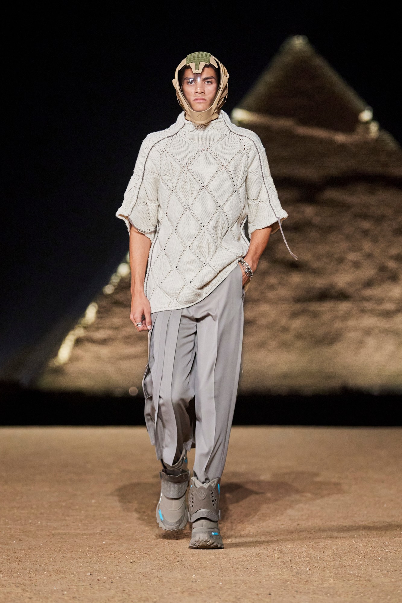 If aliens had touched down on the outskirts of Cairo on Saturday night, it wouldn’t have been the most astonishing element of a fashion show that took the phrase “out of this world” somewhat literally. In front of the Giza Pyramids – one of the seven wonders of the ancient world, and the only still left standing – Kim Jones presented a Dior Men collection that drew on his obsessions alongside a transfiguration of the house archives to an audience who, by its closing concert (a 45-minute Max Richter performance of Vivaldi’s The Four Seasons), had run out of superlatives to describe it all. If destination shows have become a space in which brands flex their weight, this was a knockout.