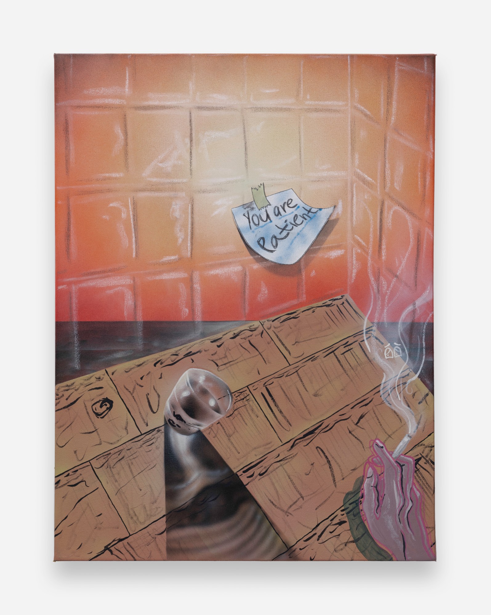 Now showing at Guts Gallery, Distraída delves into the state of being permanently distracted, something Larissa has fought with for a long time she says, caught between reliving previous trauma and engaging with perceived future scenarios. “This search for presence is a recurring topic in my recent work. I’ve been wanting, in my personal life, to feel more grounded, more secure spiritually, and not rely so much on external validation,” she shares. “I get consumed by both my past and the future, so my mind is not ever here. That’s in all of the work – random distractions that symbolise my scattered mind – and I want you to feel some sort of uneasiness [looking at it], that’s the main thing I want you to feel. Like something’s off, that I’m not present.”