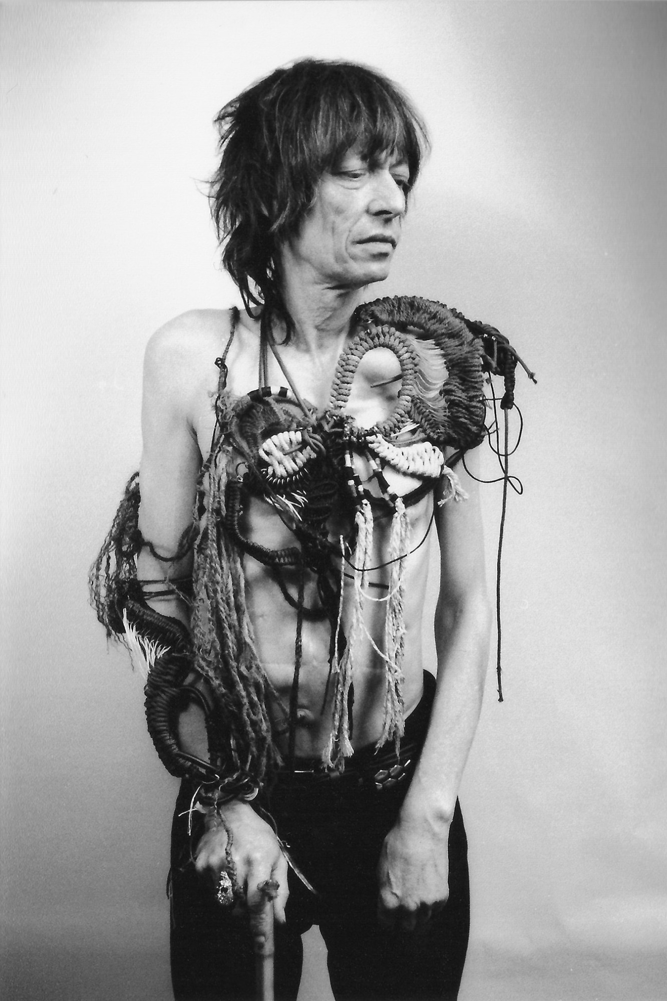 Nathalie Ballout is a textiles designer who uses modern techniques to create striking, embroidery. For the competition she created a garment “installation” for her muse, sculptor John Somerville, saying, “Apart from his striking appearance, he is someone that has integrity, and it shows in his work and in his daily struggle to make beautiful complex sculptures. Even though he is limited by left-side paralysis and with only the use of one hand he continues to create, not for the public plaudits, but purely for the beauty of creation.”