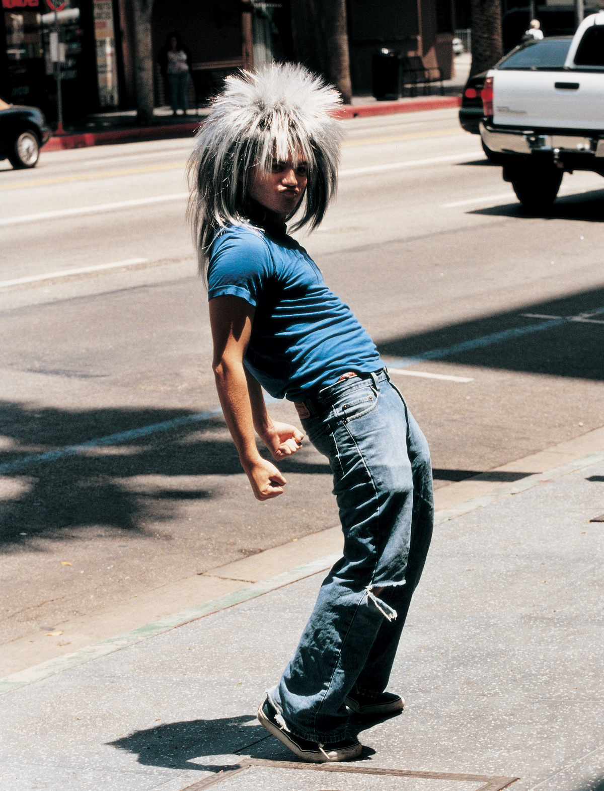 With his career surging, recent film choices span a disquieted teen in Imaginary Heroes, a forthcoming lead role opposite Justin Timberlake in Nick Cassavetes’ Alpha Dog and playing real life wild child Jay Adams in the skate flick Lords of Dogtown, a feature based on Stacy Peralta’s documentary, Dogtown and Z-boys. “I grew up in Venice and I grew up skateboarding,” he explains. Unsurprising, then, that the free spirit and spontaneous energy of skate-ace Adams hooked him in. “Jay has a very different energy to me” Emile reveals, ‘but I admired certain qualities he had.’ Troubled and compulsively impelling, with bewitchingly bleached locks and gravity-defying skate moves, Hirsch’s performance blazes amongst the ashes of the beach, an alcohol addled hippy mother, dazed board manager and prepubescent co-stars. “When I was younger there were people I aspired to be like, but not anymore,” Hirsch says. “I just want to go my own path, be my own actor, walk my own course.” While at state school – “I grew up pooooor, man” – Hirsch started auditioning and with hang tough determination landed guest appearances on TV shows such as ER and NYPD Blue. “Did my Mum and Dad influence me? Yeah they strapped me to the car and threw chains over me”. While acting “definitely made school a lot more boring” he stuck it out, rocking boats with ballsy performances in The Dangerous Lives of Altar Boys and The Emperor’s Club.