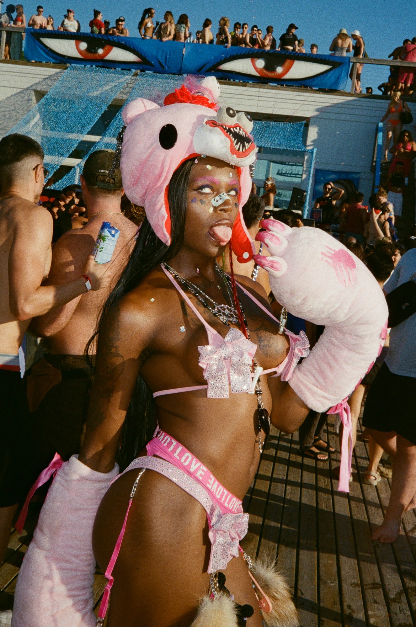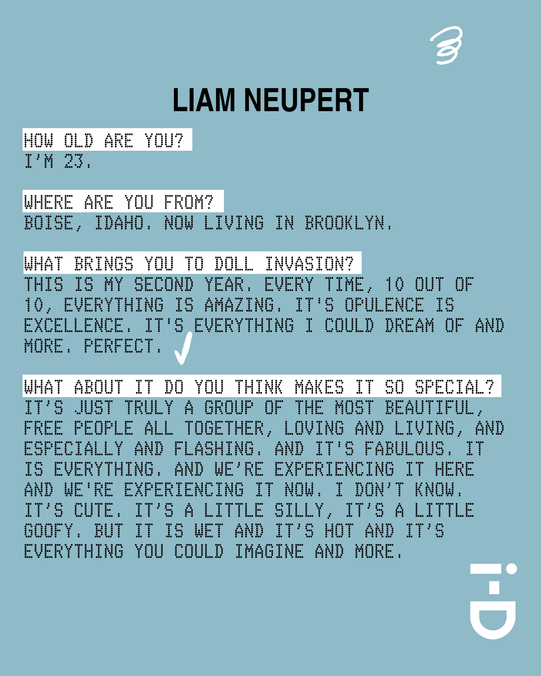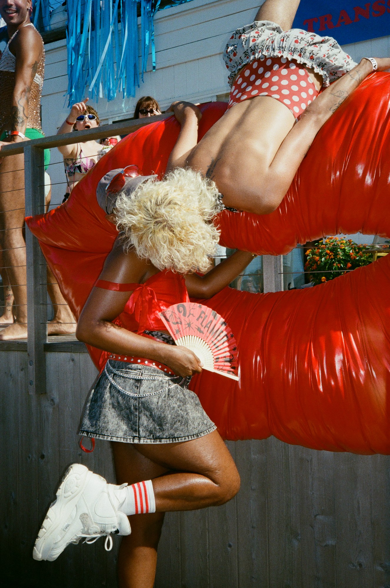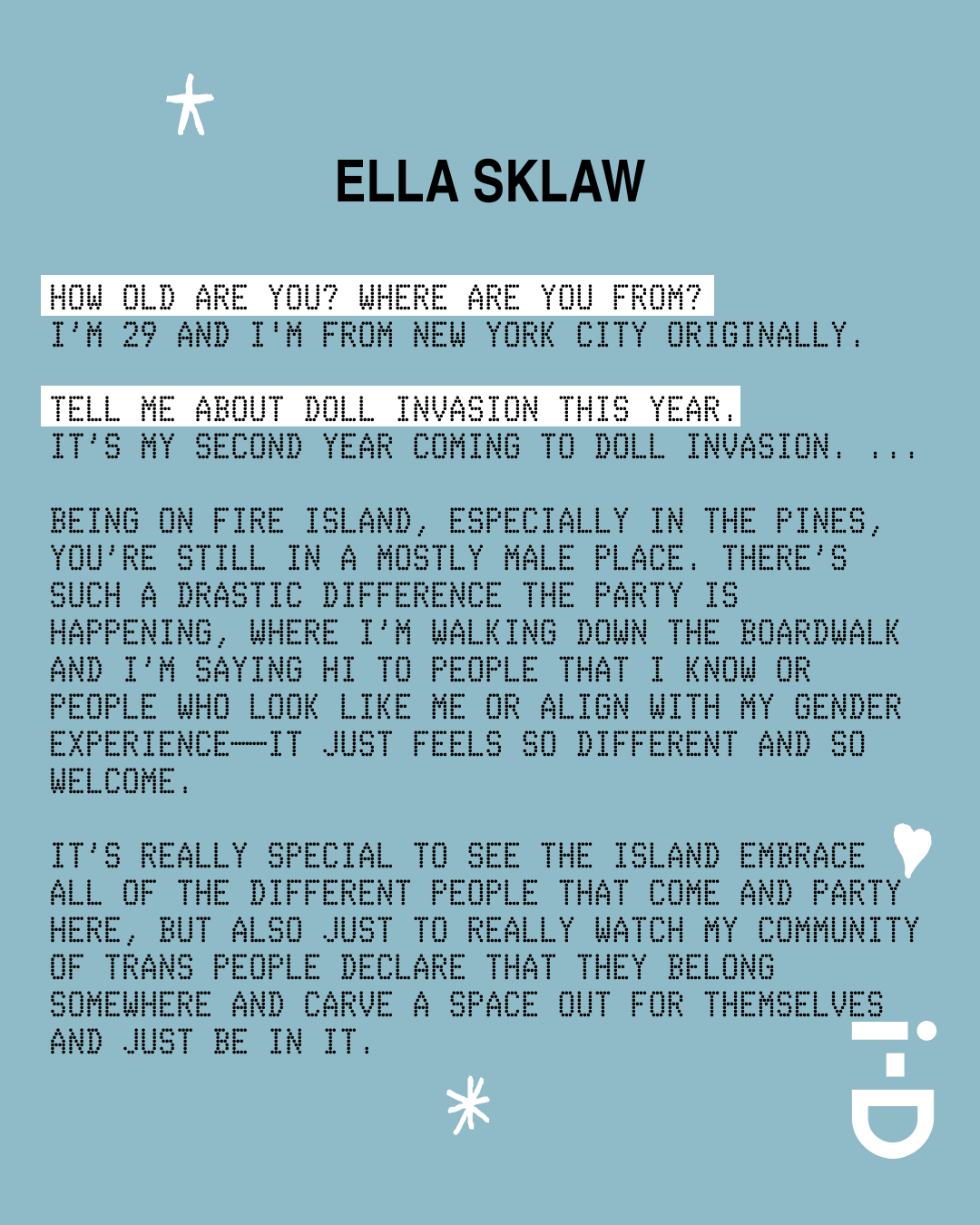 Doll Invasion is a weekend celebration for transpeople and queer life in Fire Island, New York. Founded in 2023, the organization raises money for trans-led organizations Queer Art and Advocates for Trans Equality through an auction that, this year, includes items from Chappell Roan, Hari Nef, Luke Gilford, and more. Photographer Matías Alvial captured the weekend’s celebrations from The Pines Club to the beach, interviewing attendees throughout.