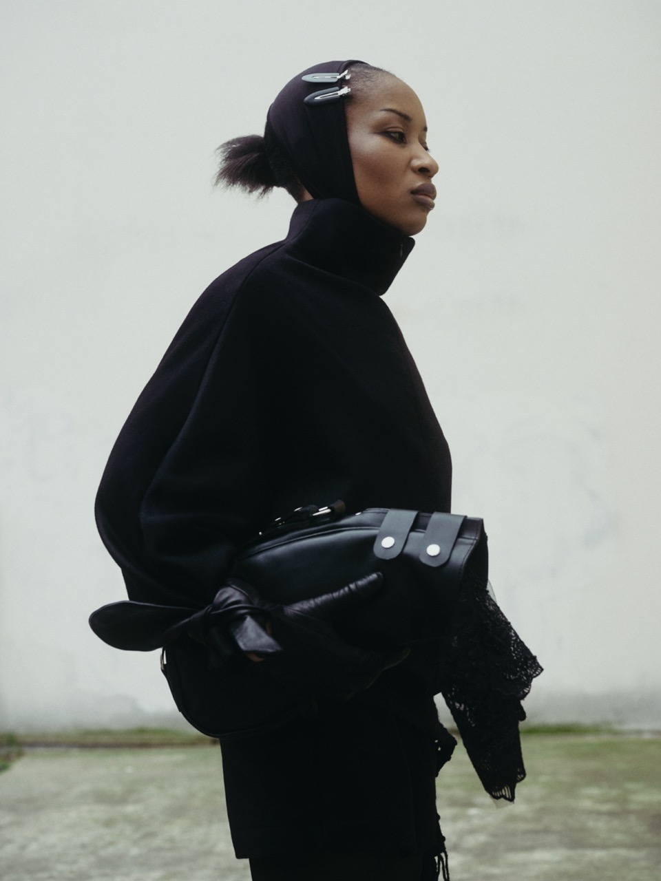 The independent fashion design acolytes among you (i.e. all of you, we bloody hope!) will perhaps recall Ifeoma, the 2017 brand that made waves for its coolly off-kilter, awkwardly sensual knits and garments hewn from upholstery fabrics. Though it quickly earned a cult audience, its founder, Eckhaus Latta alum Reva Ochuba, chose to place the brand on hiatus in order to pursue ventures in both fashion and the wider creative industries, settling in London, Paris, Prague, Istanbul and Tbilisi along the way. Now, the erstwhile designer has come home to roost – well, not literally, but rather spiritually, returning to her calling to put out the first Ifeoma collection in six years. Here, Reva tells us about the conceptual underpinnings of her svelte, black-on-black revival collection – and shares a selection of images from her self-starring, Marc Asekhame shot campaign. MS