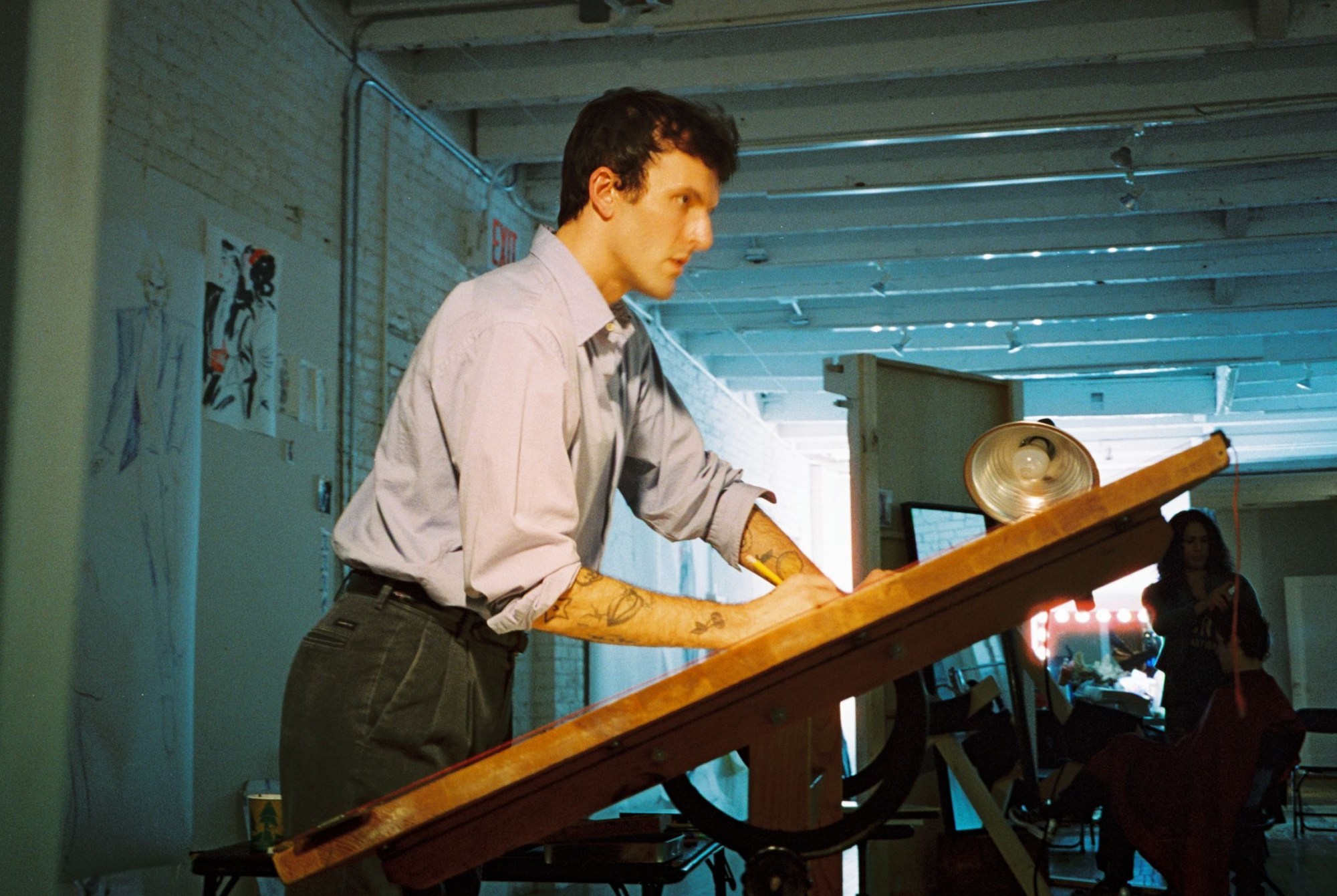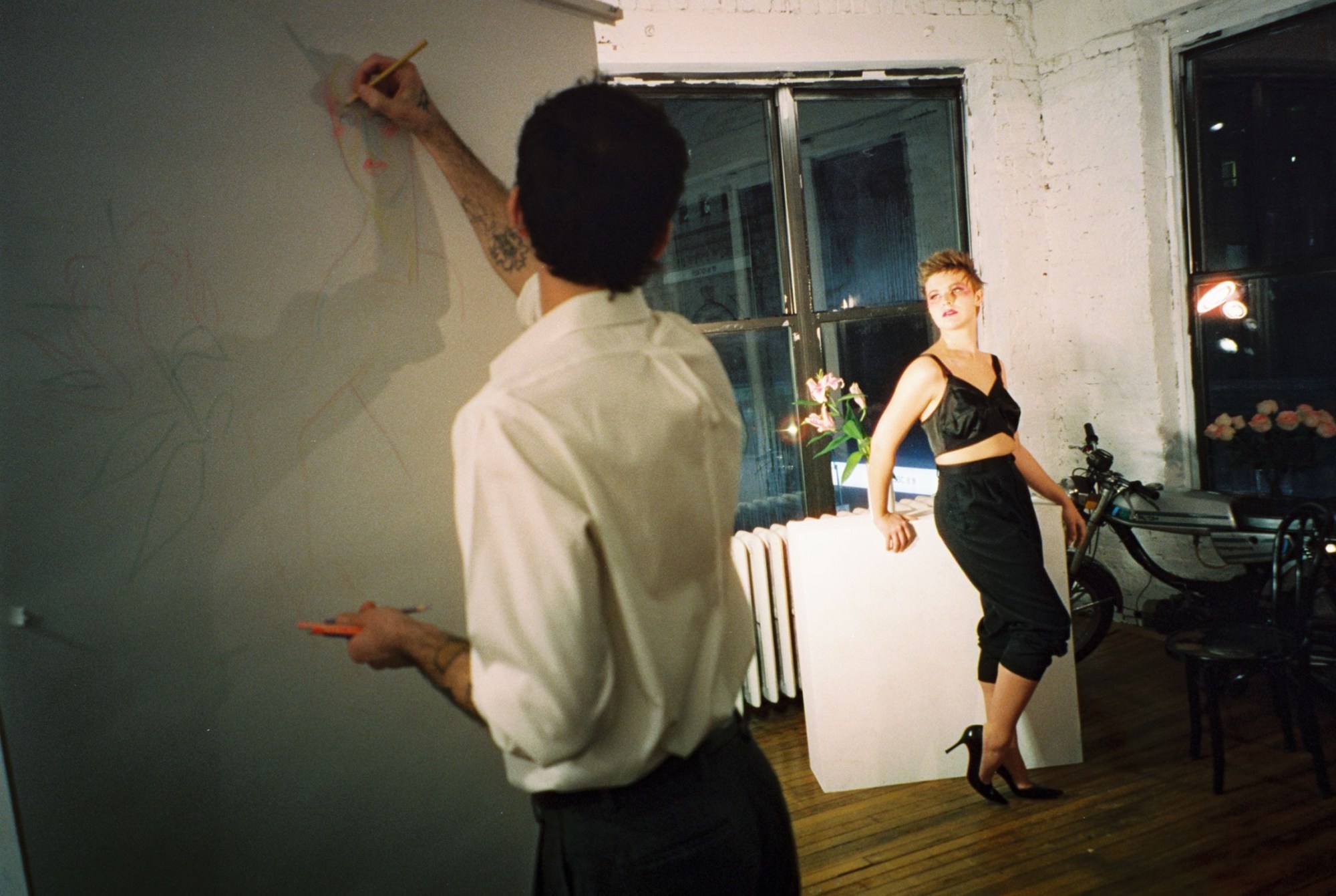 Under such demanding conditions, collaboration is key and so too is the artist’s awareness of his sitter’s limits. “It’s very intimate and often kind of erotic,” he says of the sessions. “It’s sort of like that feeling you get sometimes when you’re having sex, where you feel like you can fully read the other person’s mind. I’m watching a list of emotions just run across their face, their pupils dilating or sweat appearing. It’s crazy to stare at someone so hard for so long.” Part of that intuition means knowing how to get the most out of his models. “The music I put on plays a huge role. I try to curate music that will activate the pencil, but also to fit the vibe of the person I’m drawing. If they need to sit down or shake it out, I’ll put on the right song and it can breathe new life into them.”