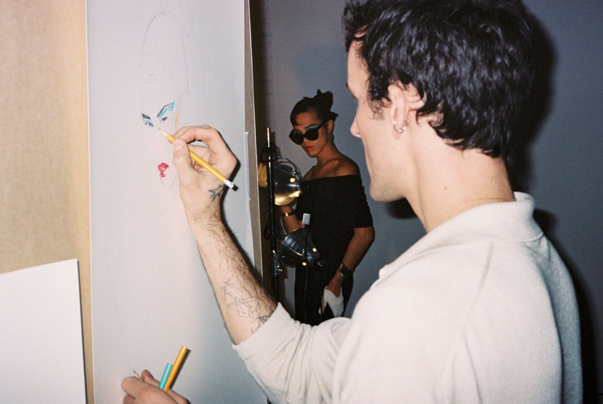 “I’ve become better friends with people I didn’t know, and it’s encouraged me to ask people who I feel intimidated by if they’ll sit and pose for me,” he says. “And while I’ve never felt comfortable with the idea of performance [Drake drew two portraits during the exhibition’s opening], I feel like I took a lot of comfort from how it went.” Does he give himself a time limit? “You’re so focused that [you] never know how much time has passed. You’re staring so intently that the best indication [of time passing] is when you see their skin get dewier and they start to shake.”