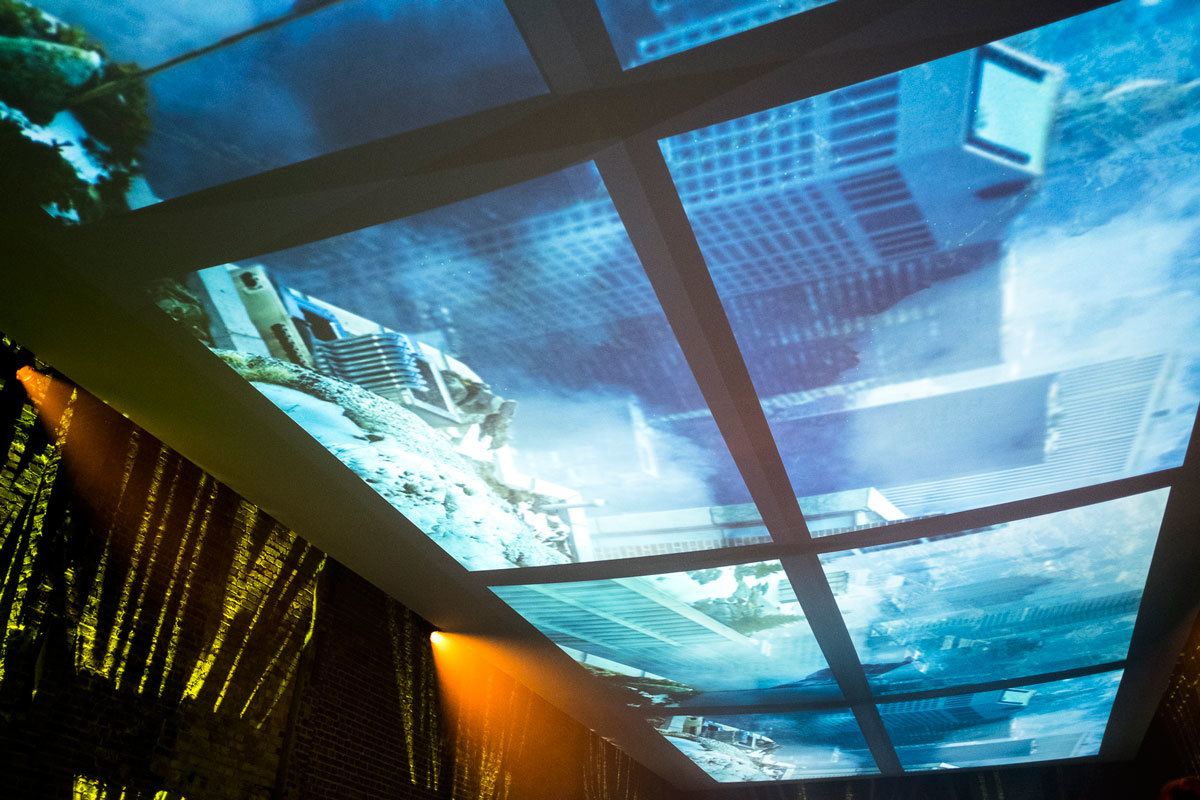 The work is called Terrene. It’s an artificial depiction of geological structures and earth’s atmosphere. The courtyard of the museum is a large cylinder, and the installation can be experienced from different levels in the museum. This inspired me to make a layered construction, both visible and audible, where each layer represents an earthly natural phenomenon. Peter Van Hoesen made the soundtrack. The idea was inspired by the works of eccentric 17th-century landscape artist Hercules Segers.
