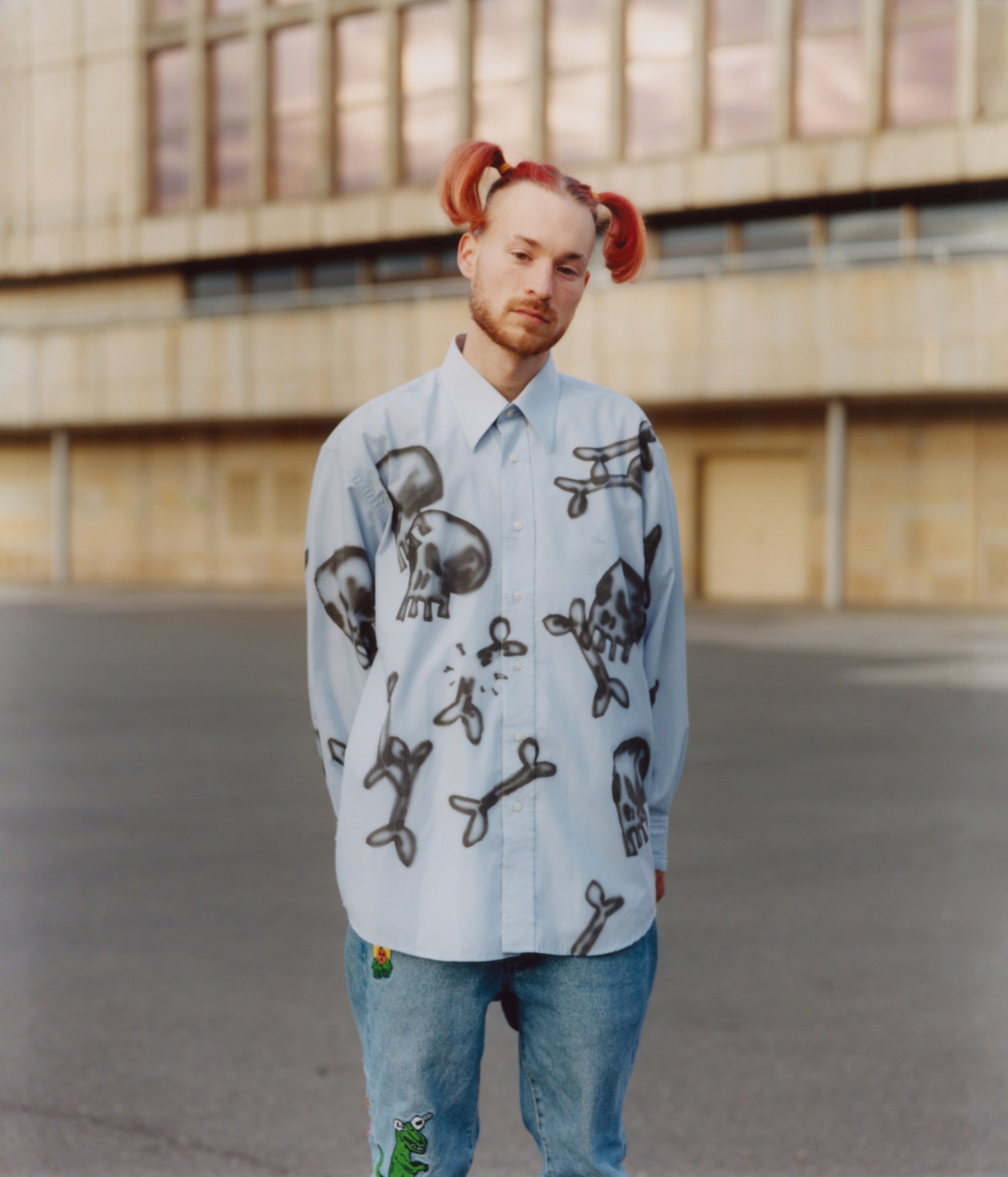 One evening, Benjamin stumbled across a concert in the middle of Gera square full of brightly dressed young performers sharing the same enthusiasm and energy. “This evening stuck with me,” he says. “I wanted to explore the minds of the left-wing youth of this city further.” Collaborating with London-based stylist Warren Leech and two casting directors from Berlin, Benjamin tried to track down the performers from that night along with the other incredibly open and creative people rebelling against the norm of their hometown.