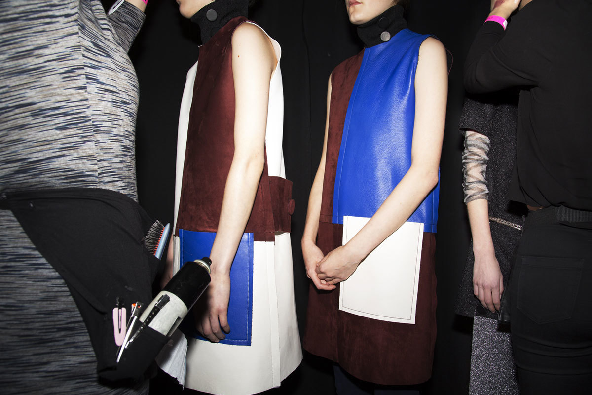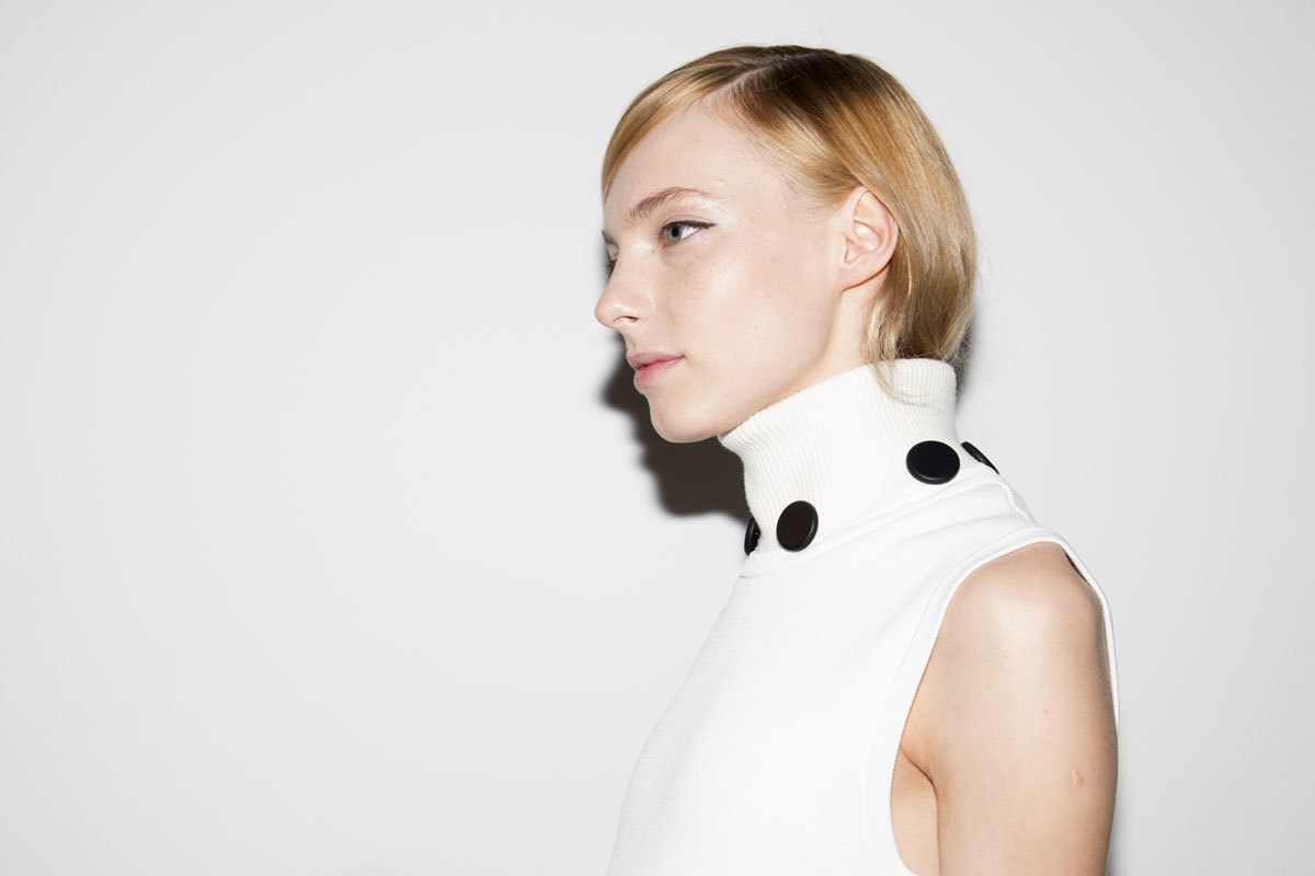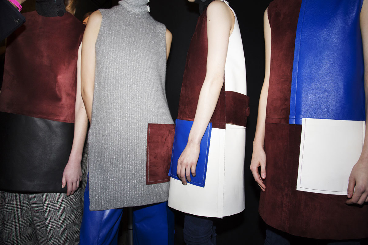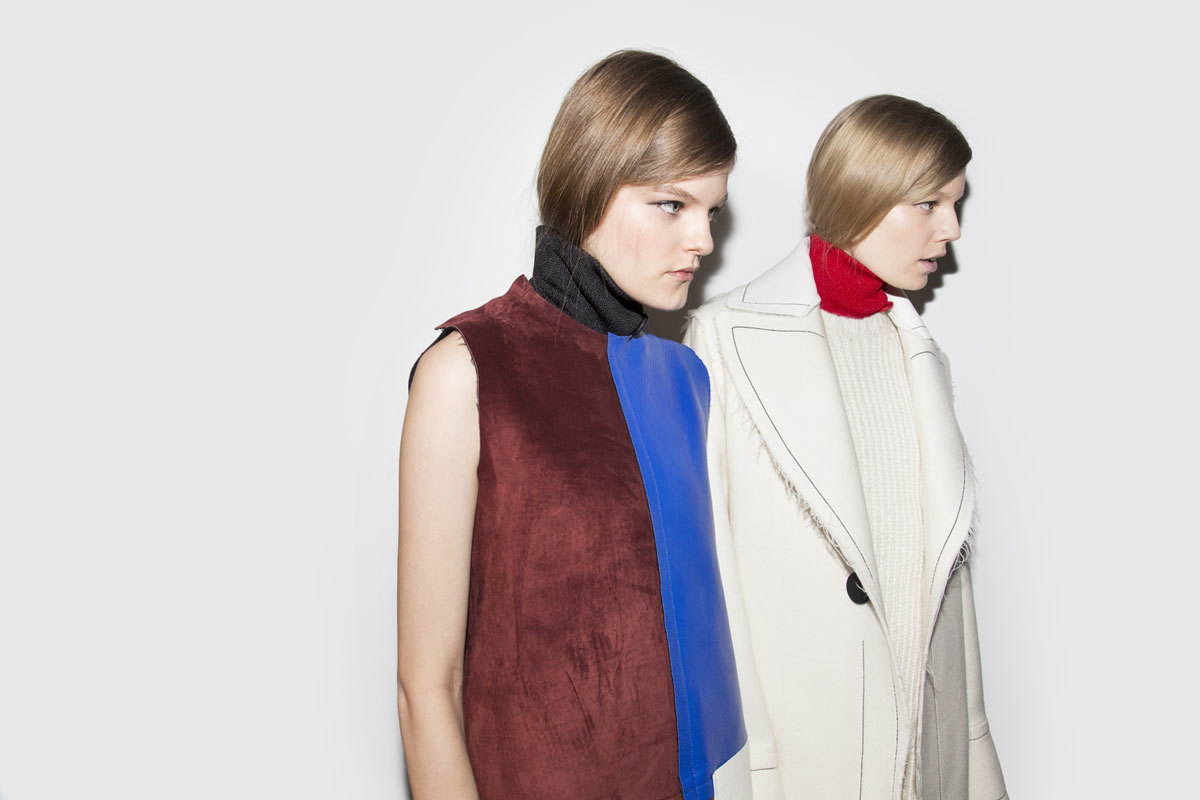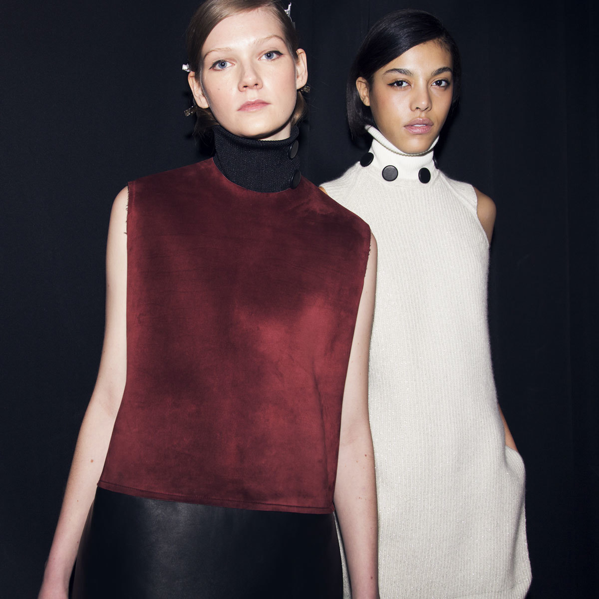 The particular skill of Sherman, and what makes her a great fit for this brand, is her ability to translate this sustainable, international mission into the type of clean basics that made girls line up to buy her previous efforts, The Row and T by Wang. The collection was filled with simple, appealing separates: sharp coats in leather and wool, loose, cropped pants, and Mod tunics. Plus, the brand’s first shoe, a second-skin boot that creeps up the thigh and attaches with garters.