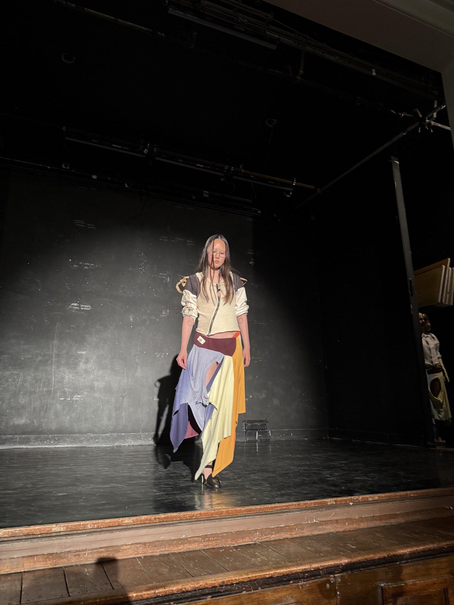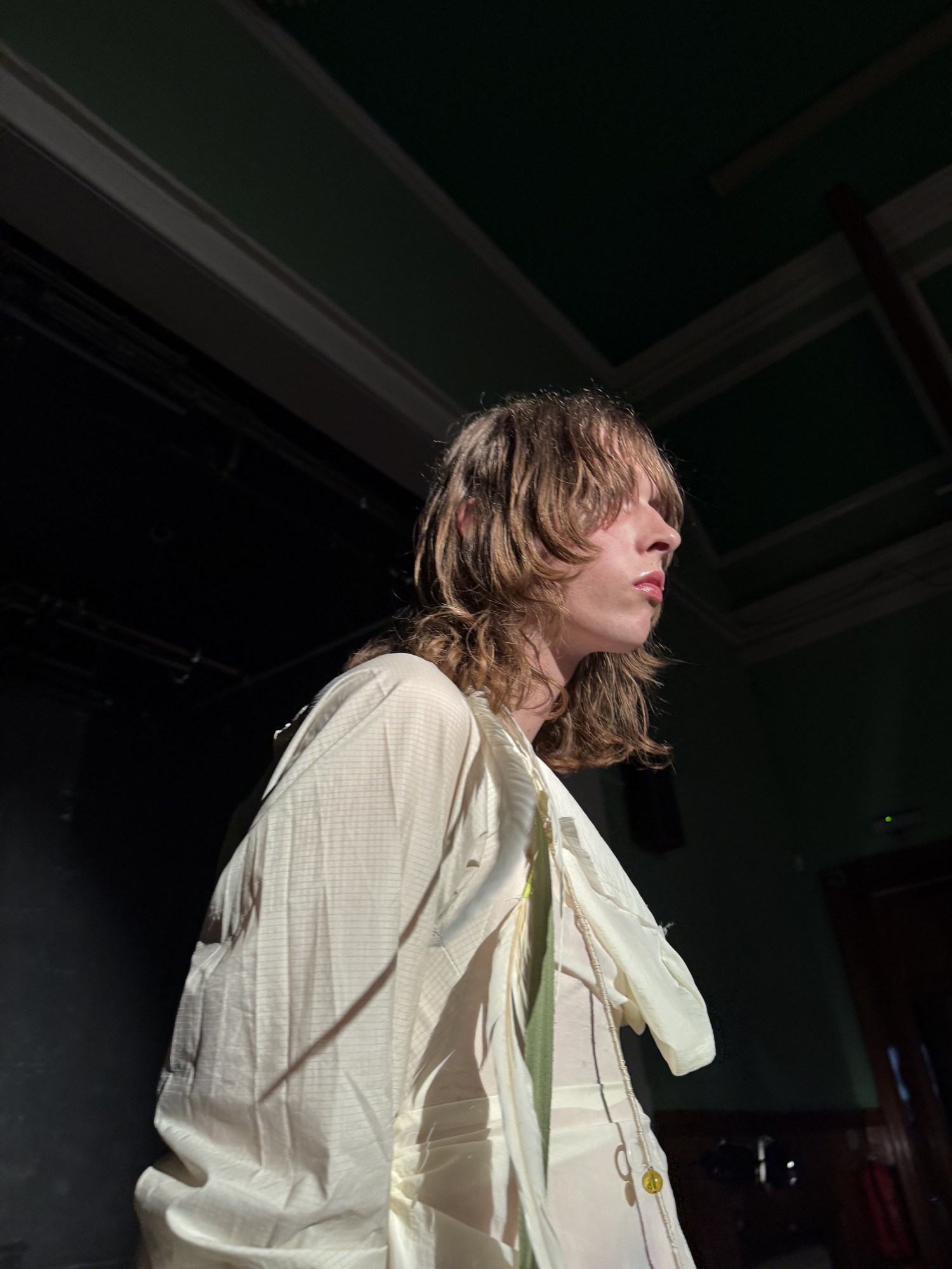 Waiting over an hour outside a South London church hall while a gospel sermon shakes the floor beneath your feet might not sound like the prelude to a fashion show—but that’s exactly what it is. Upstairs at Longfield Hall, Ellen Poppy Hill prepares to unveil her second collection, “No Point in Making Myself Comfortable,” and somehow, the Sunday sermon soundtrack only adds to the moment.
