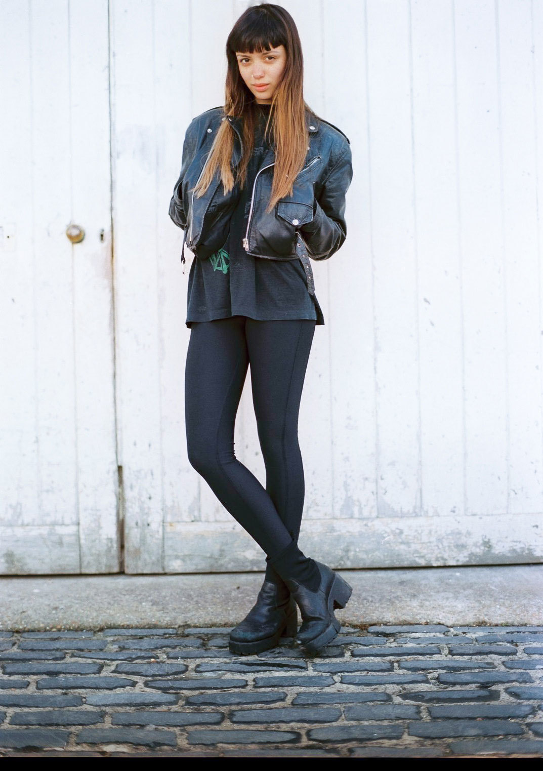 Topshop T-shirt. Nike running leggings. Vintage leather jacket. Vagabond shoes
