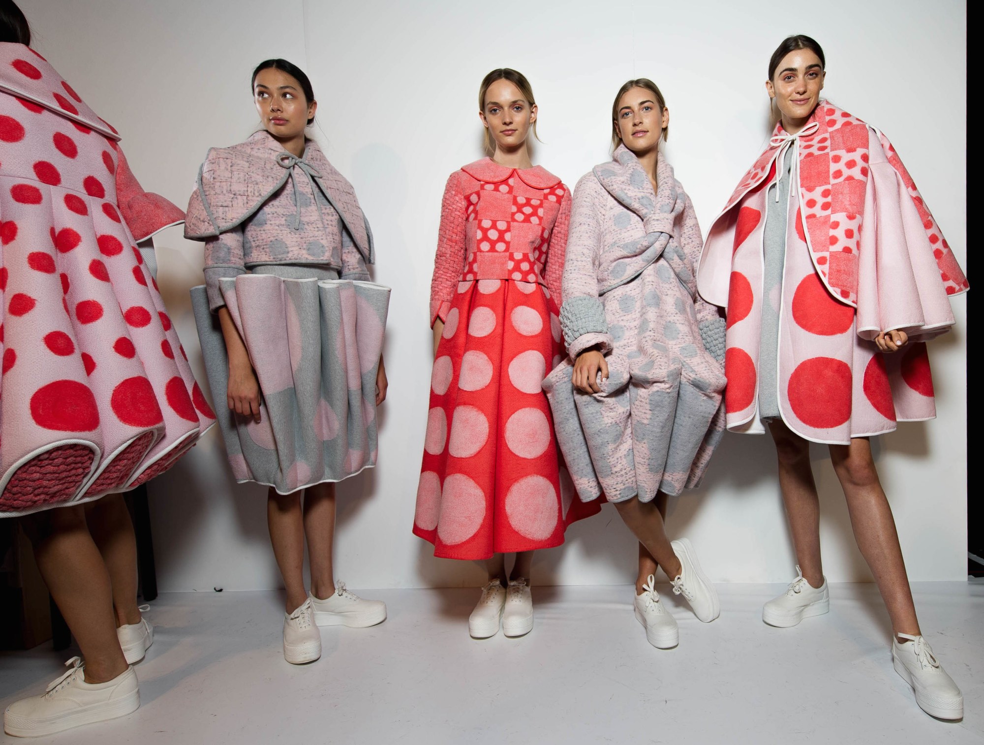 Vanessa Emirian’s graduate collection Circulate is hard to forget. Featured as one of 12 designers in the National Graduate Runway at VAMFF in March this year, Circulate puts us in a wacky, playful mood where spotty possibilities are endless. With an emphasis on traditional, artisan hand-made techniques, the collection incorporates an impressive array of needle felted patterns, weaving and bonding. We spoke to Vanessa to understand how she imagines her evident talent will translate into future collections.