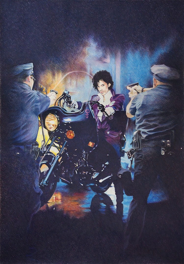 So in “Purple Lives Matter,” a work that shows two white police officers aiming their guns at Prince, what are you articulating?