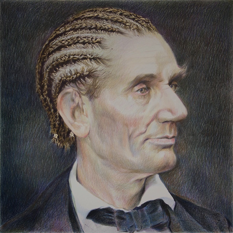 I made “Abe Lincorn” immediately upon hearing the news about Rachel Dolezal, the defamed former white NAACP chapter president who attempted to pass herself off as black. Yes, I laughed with everyone else, but in truth, I also completely understood her desire. I understood some of the guilt, associations, and khaki blandness of being “simply white.” I understood her deep reverence for black culture. Most of my own personal heroes happen to be black. That’s what I mean about this show being an uncomfortable self-examination. I can voice my opinions, and make art that addresses black issues, but, I obviously can never be black, nor can I truly understand what it means to be black in America.