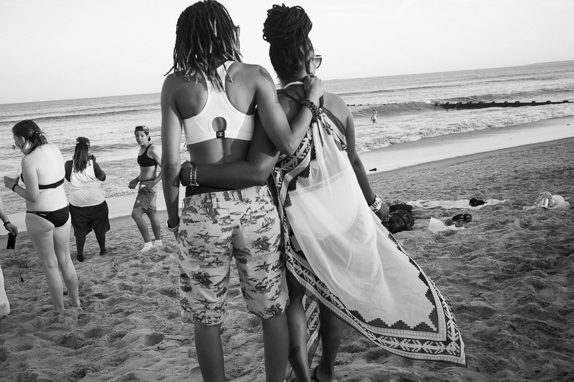 It was at Fort Tilden, Memorial Day weekend 2015. Truly, I just happened to look up from my towel and see the way these two were entwined. I was like, Oh, that’s really sweet. I had an old 35 millimeter Canon camera; I took a photo and I was very nervous they were gonna see that I was doing that. But I got that little butterfly of excitement. I was like, Let me see if I can get other couples, to finish off this roll. When I got the film developed, a few weeks later, I was like, Okay, this is something. That became my goal for that summer: to keep photographing couples on the beach in black-and-white, and see what it turned into.