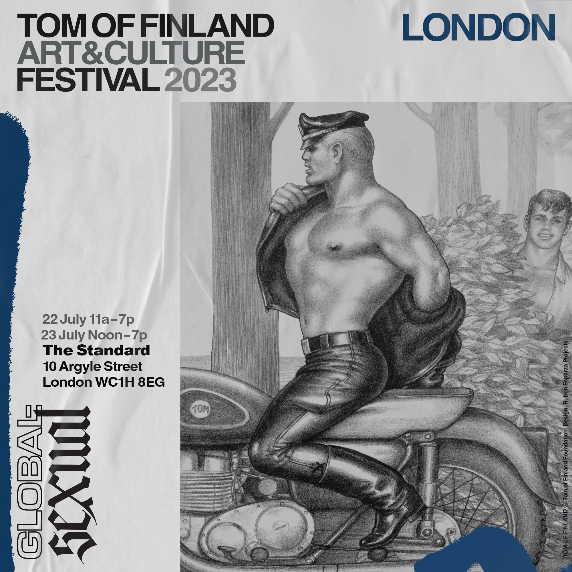 This weekend, the annual Tom of Finland Foundation Arts and Culture Festival returns to London, this time to The Standard Hotel. Dedicated to preserving the famed homoerotic NSFW art filled with beefcakes, sailor jocks and leather daddies that has become a defining part of queer history, the non-profit has curated an exhibition that will feature Tom’s works alongside other established homoerotic artists and photographers such as Martin Perry, Rick Castro, James Dearlove, Felipe Chavez and Ed Firth. There will also be talks on writing queer sex, gay porn and the history, present and future of the leather scene. Additionally, queer cabaret The Glory’s life-drawing session for artists of all levels and calibres will take place in The Standard’s Library Lounge on the Sunday, with porn actor John Thomas as muse, posing within a set designed by artist James Davidson to a soundscape by Anal House Meltdown. For a very queer weekend, get your tickets here. TG