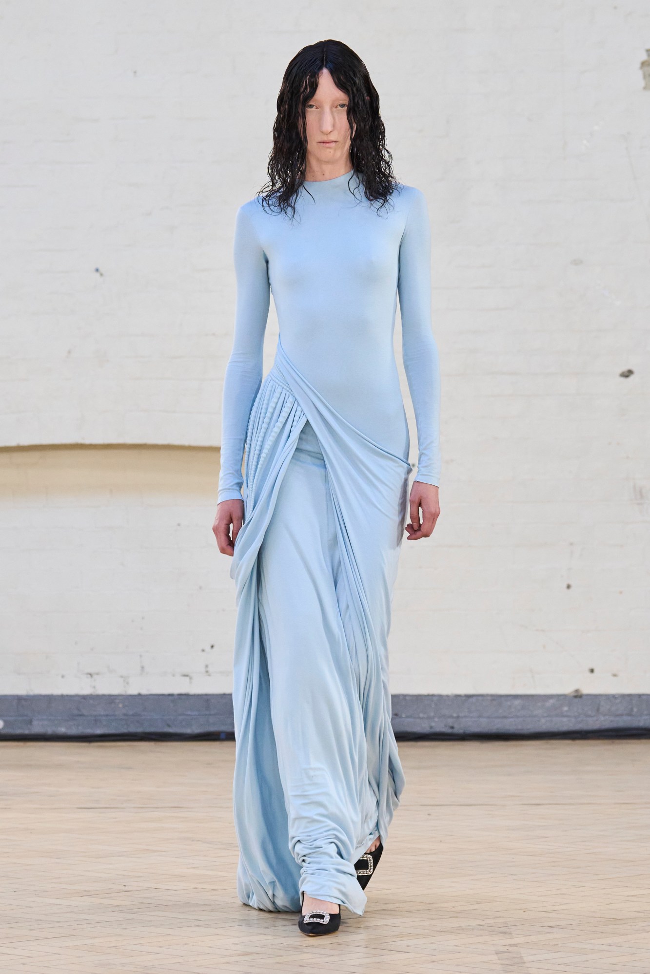 Each season, an irrefutable highlight of the London Fashion Week calendar is Fashion East, the talent incubator founded by Lulu Kennedy more than two decades ago, and a crucible for some of the city’s most emblematic designers. SS24 was no exception, with the ubiquitously adored group show taking residency in a former military gymnasium near King’s Cross, seeing the return of Johanna Parv and Standing Ground – their second and third collections on the Fashion East roster respectively – as well as the debut of Olly Shinder and the return of incubator alumnus ASAI. From stoic glamour to sensually subverted masculinity, practical elegance to brazen eccentricity, it was a show with something of every flavour, with the full low down ready for you to dig into below.